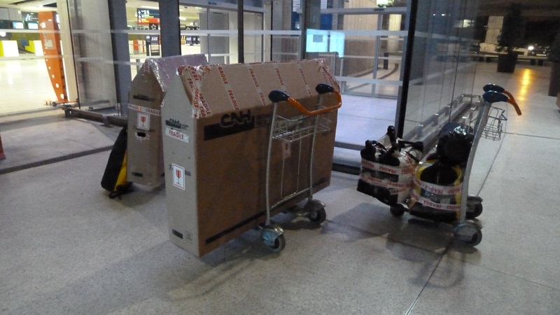 On s’est pointé à Roissy bien en avance, ayant un peu peur d’avoir à négocier pour nos gros cartons. Mais ils passent sans problèmes, même si on a du allonger 50 € supplémentaires par vélo pour la section Paris-Frankfurt (Ophélie voulait absolument faire une escale là-bas pour un hot-dog).