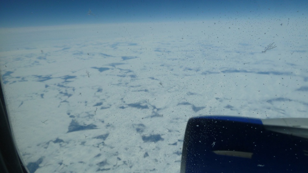 L’avion pour Las Vegas est à la hauteur du prix payé mais les 11 heures de vol passent finalement assez vite et on a pu admirer la vue du hublot. On a survoler une partie de l’Islande, du Groenland et le grand nord Canadien : banquise (enfin, ce qu’il en reste), plaines glacée, lacs gelés… des espaces gigantesques que l’on met des heures à survoler, même à 850 km/h.