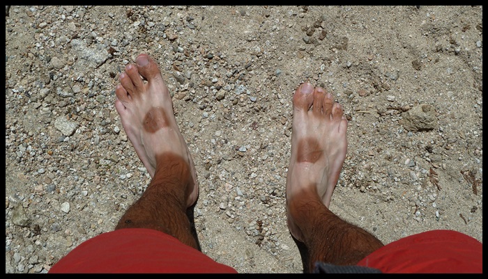 J’adore le bronzage sandales. Hé pi y faut manger 5 fruits et légumes par jour qui dise. Si vous voulez un peu d’eau on peu vous en filer, ici ça trombe bien.
