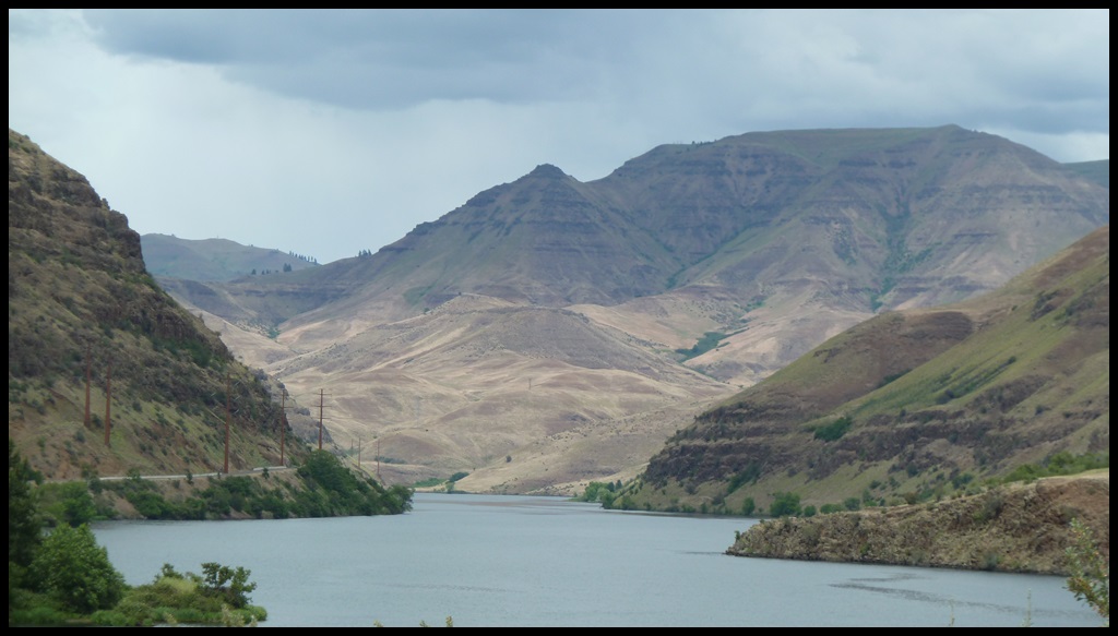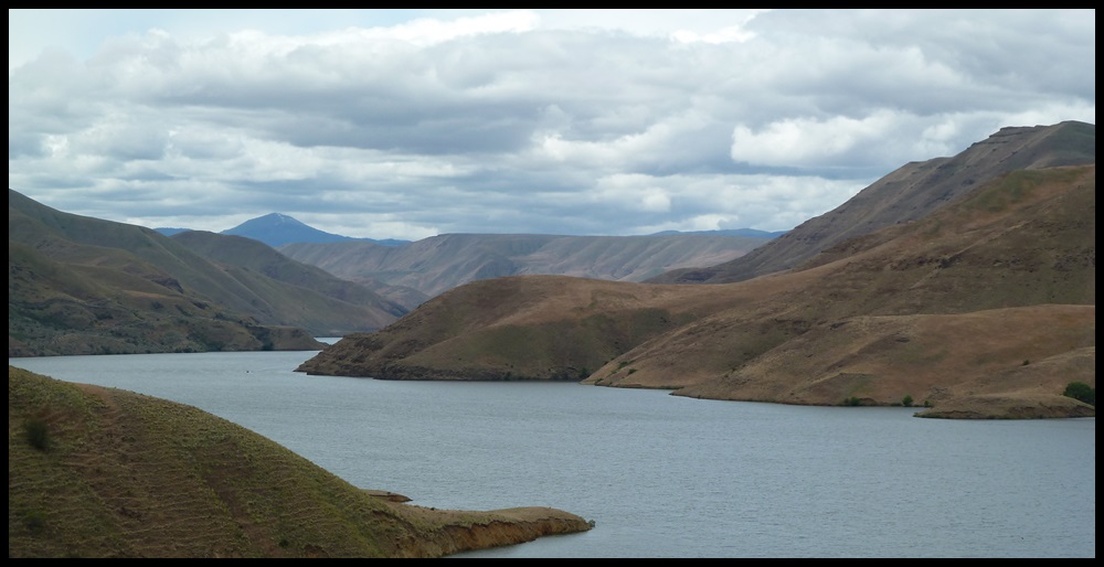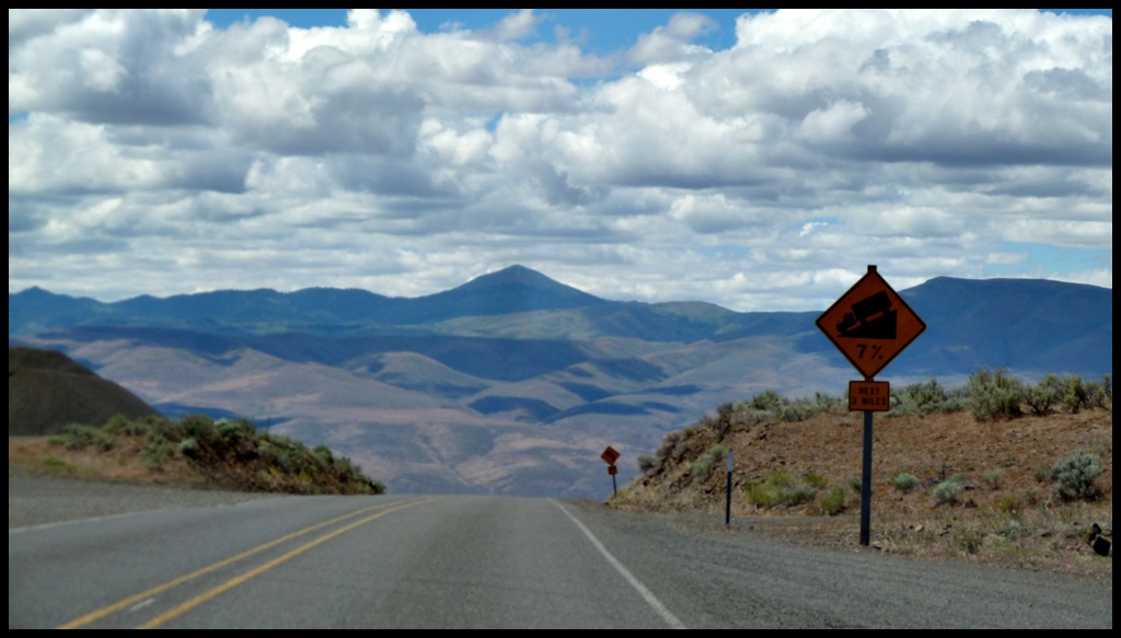 On a la flemme de faire encore 100 bornes mais on est attendu chez un hôte Warmshower à Halfway. On s’ennuie un peu sur la route, on a rien vu de transcendant depuis qques jours, rien que la campagne de l’Idaho. Mais au bout de 33 km et 3 heures de grimpette, on tombe sur le Hell’s Canyon ! Ça remotive.