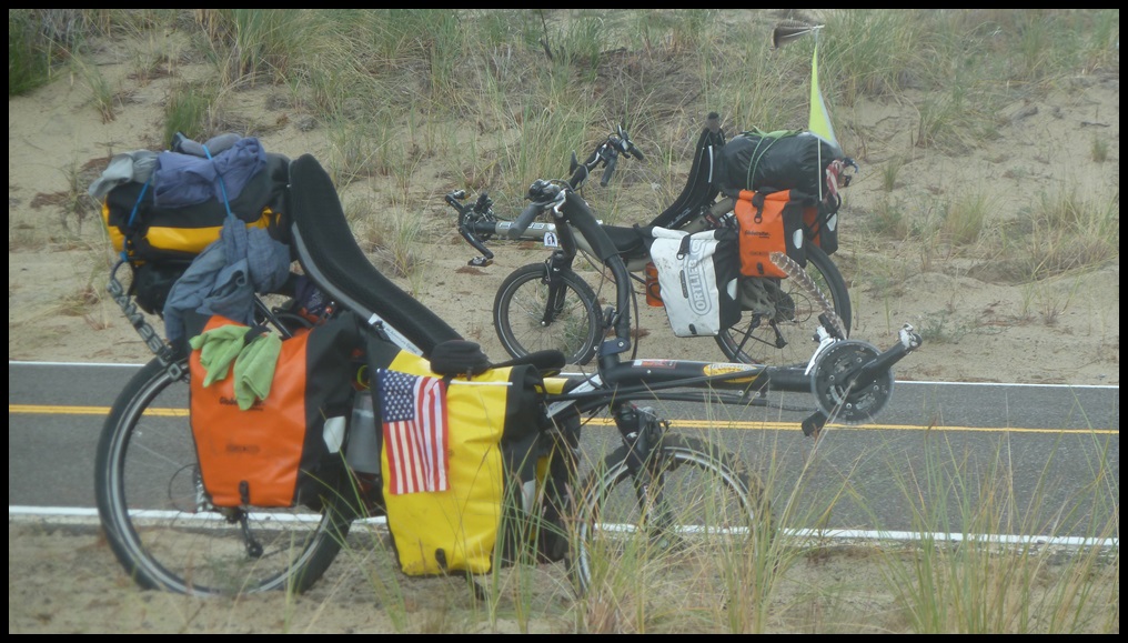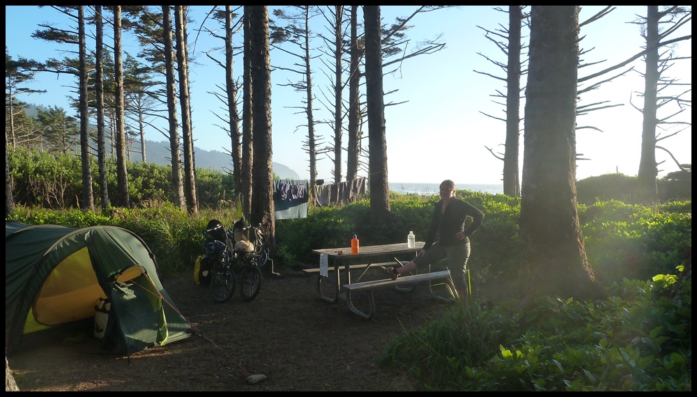 Nous pédalons de State Park en State Park. On a beau dire que l’Amérique est le pays du capitalisme et du libéralisme déchaîné, on croise énormément de parcs d’État aux tarifs très doux. Nous ne payons que 5 ou 6 $ par personne pour une nuit dans des campings magnifiques en bord de mer avec tout le confort moderne pour nous : tables et douches.