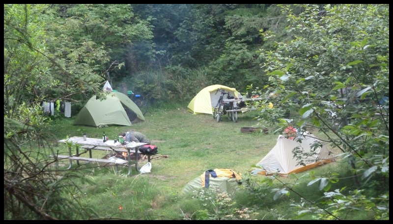 Les 2 jours suivants, on roule tranquillement, poussé par un vent parfois très fort. En milieu d’après-midi, on se pose dans des campings toujours aussi beaux et on y retrouve nos amis cyclistes et… Helen et Ed, plus connus sous le sobriquet de « nos p’tits vieux ». Ils nous racontent leurs voyages en Chine, en Amérique du Sud, au Vietnam… Du haut de leurs 67 ans, ils ont visité pas moins de 80 pays. Ils sont hyper organisés, on les regarde plier le matin, c’est comme un ballet.
