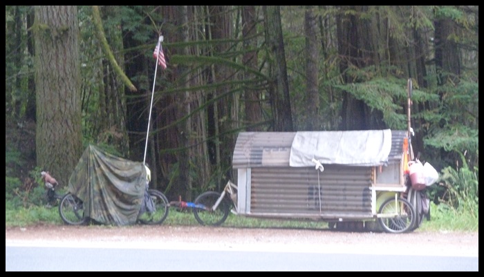 Nous faisons la rencontre d’un très sympathique couple d’Australien : Emma et Brandon, en voyage durant 18 mois sur leur tandem. Ils sont partis de Vancouver il y a 6 semaines et leur destination finale est Santiago du Chili. On se retrouve tous les soirs au camping et on se marre bien. Ils ont un humour débridé, ça nous change des américains un peu trop consensuels, puritains et diplomates.