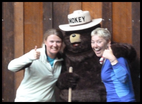 Par miracle, j’ai rencontré mon idole au camping de Burligton (à Weott) : Smokey the Bear, il est apparu dans un camion de pompier pour fêter son anniversaire (69 ans, il n’est plus tout jeune). J’ai pu être initiée et promue au grade de Princesse Junior Ranger. En prêtant serment, j’ai obtenu mon badge, Je suis trop contente, maintenant on me respecte et on me craint, les gamins de 5 ans ont peur de moi !
