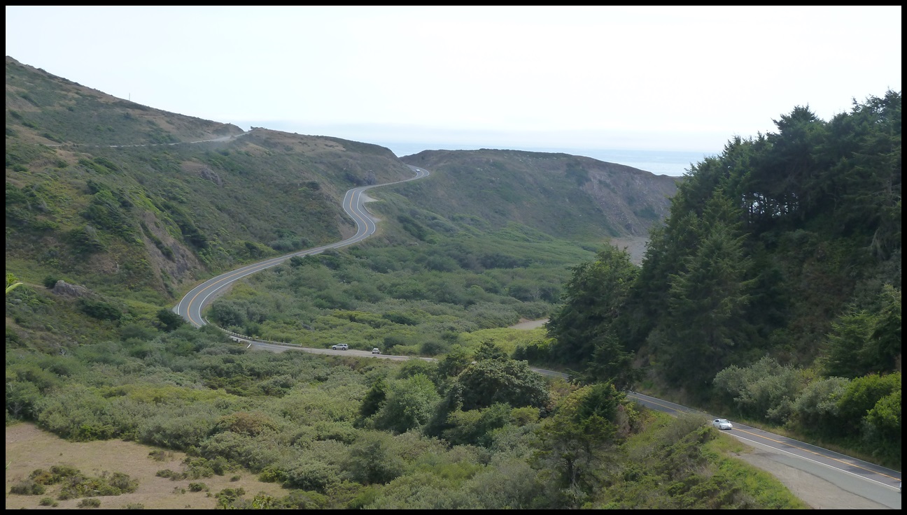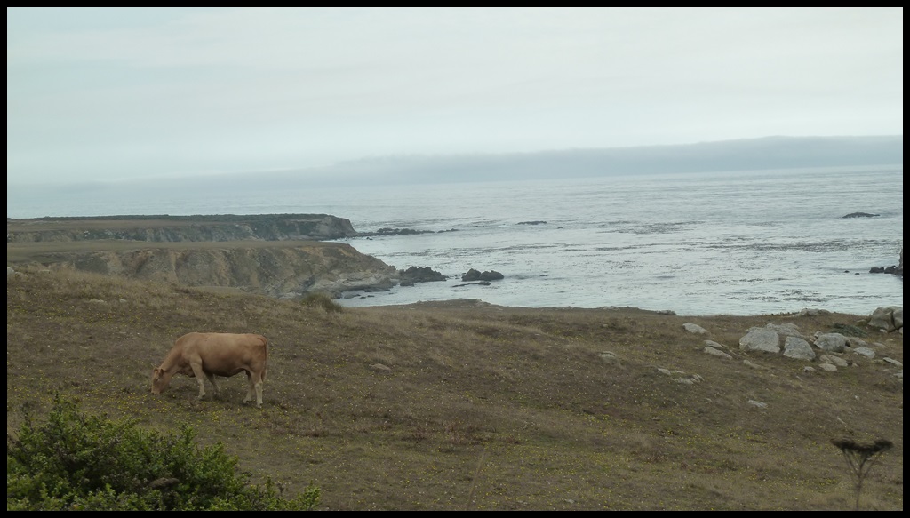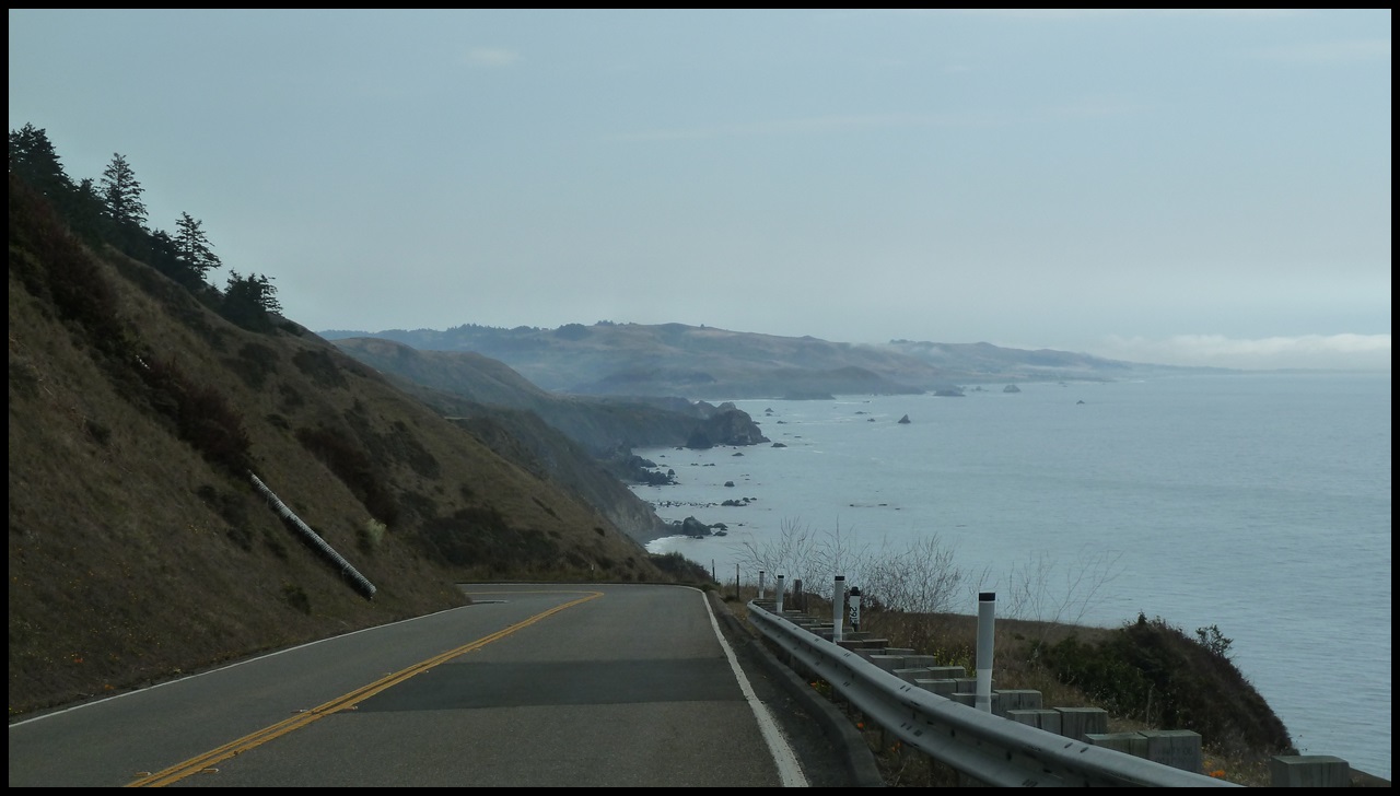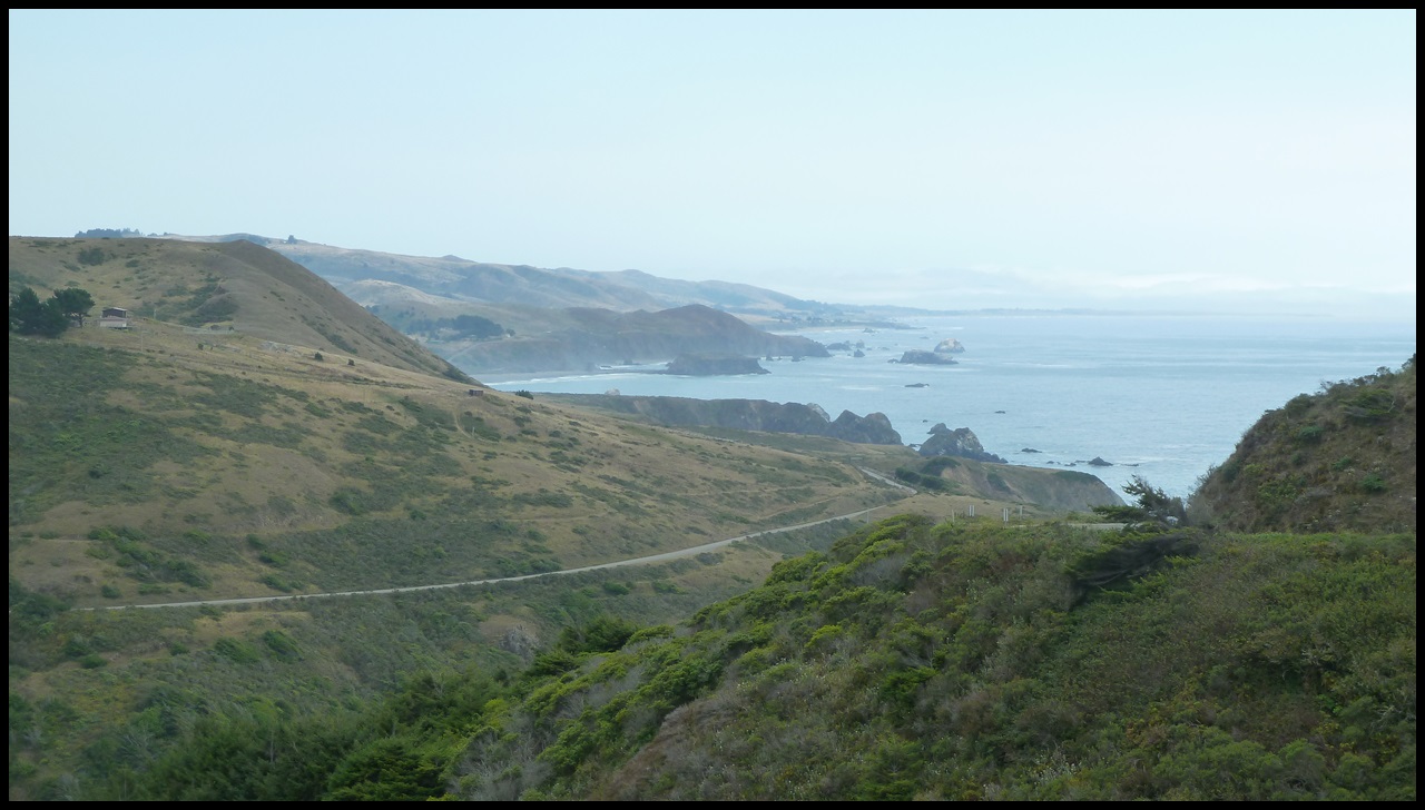 Depuis qu’on a quitté les Redwoods, on circule sur l’une des plus belles routes du monde : la Highway 1. Il y a peu de circulation, la côte est sauvage et les nombreuses montées font varier les points de vue. Heureusement que c’est beau car c’est pas facile sur le vélo : que des petites grimpettes entre 5 et 10 %; avec le poids, nos vélos sont stoppés net dès les premiers mètres. On préfère largement une bonne côte de 3 heures que 30 côtes de 6 minutes. Nico, je sais que tu comptes sur tes doigts pour vérifier mais c’est correct : 30 x 6 minutes = 180 minutes = 3 heures.