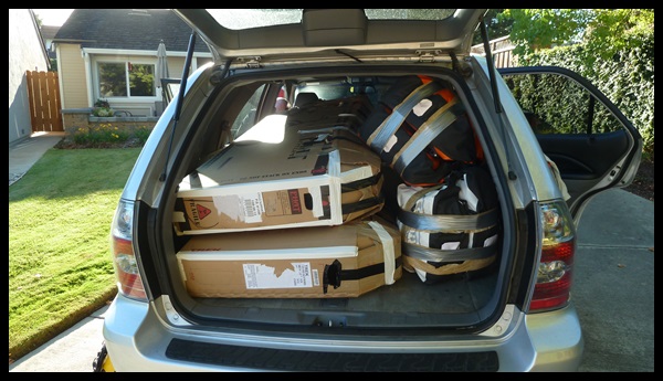 A SF, ça commence mal puisque Boulet Fred a mal réparti les sacoches et se retrouve avec un tas de 26 kg au lieu des 23 maximum. 15 $ le Kg supplémentaire, plus cher que du bœuf !! Pour les vélos, nous ne payons que 50$ pièces, très bon prix.P1060300