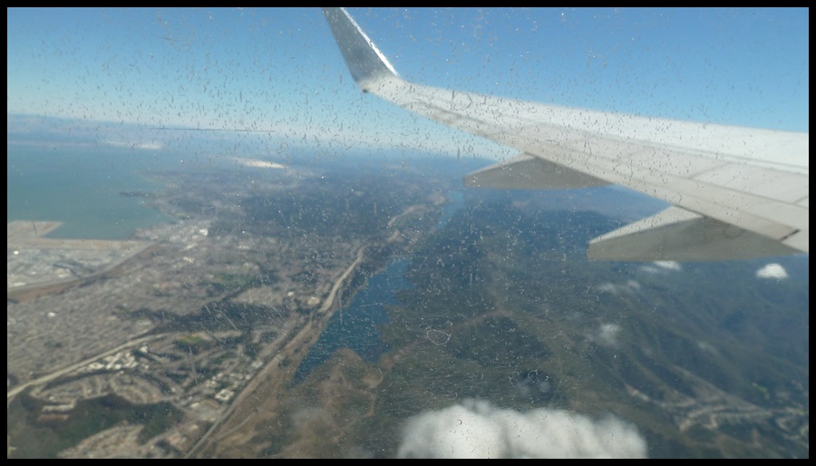 Après une dernière superbe soirée à l’ambassade de France de Pleasanton (à cause des drapeaux) avec notre famille d’accueil, Roy nous mène le lendemain matin à l’aéroport. Ça rentre pile poil dans le SUV, Ophélie n’aura finalement pas à s’accrocher sur le capot.