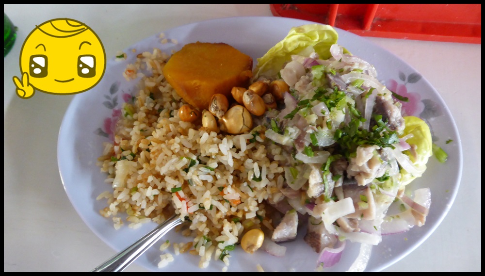 El Cuy al horno : le cochon d’inde au four, à manger façon Kohlanta. Marie-Andrée aura du mal à me voir attaquer la tête. C’est vraiment bon : un mélange entre de l’agneau, du kebab et du poulet. Je conseille tout de même d’éviter ça pour un repas romantique. « Chérie, tu me laisses le foie ? Non je t’en prie, je viens de ronger le crâne, les oreilles étaient délicieuses ! J’ai pas une patte coincée entre les dents ? ».
