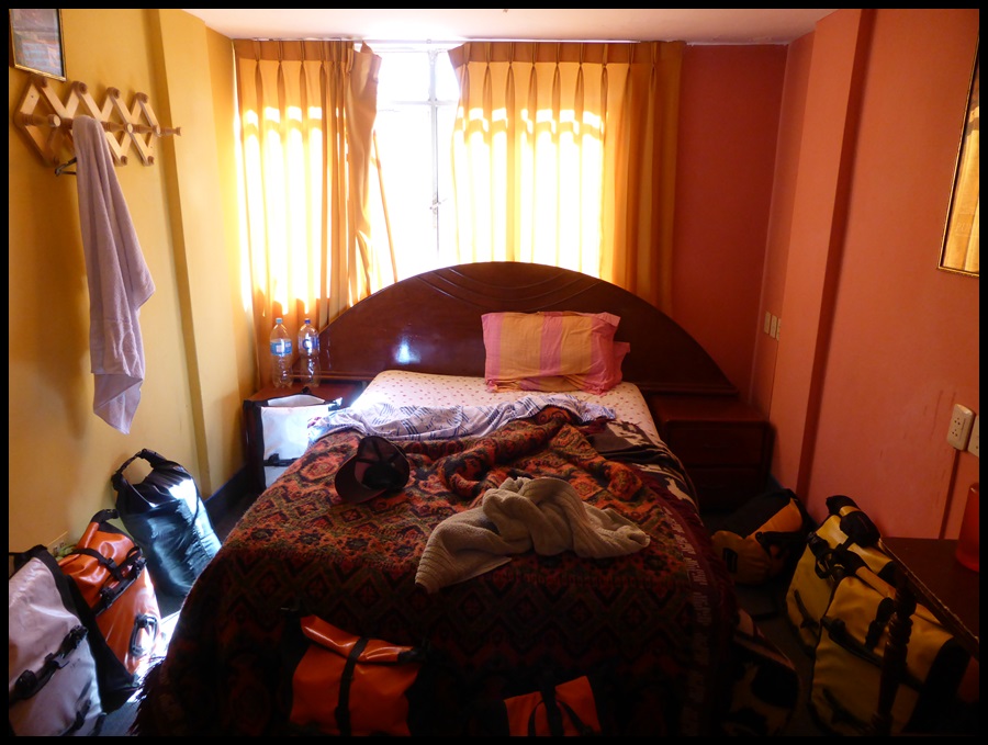 Avec Fred, nous sommes un peu effrayés de prendre une douche car il y a des câbles électriques qui pendent et qui sont aspergés d’eau lorsque l’on allume le robinet. Pas le choix, on en prendra une et la nommerons douche Claude François. Après une électrocution évitée, on se mangera un petit plat : riz, pâte et morceau de poulet frit. Record du repas le moins cher : 5 soles pour nous 2 (1,33 €).