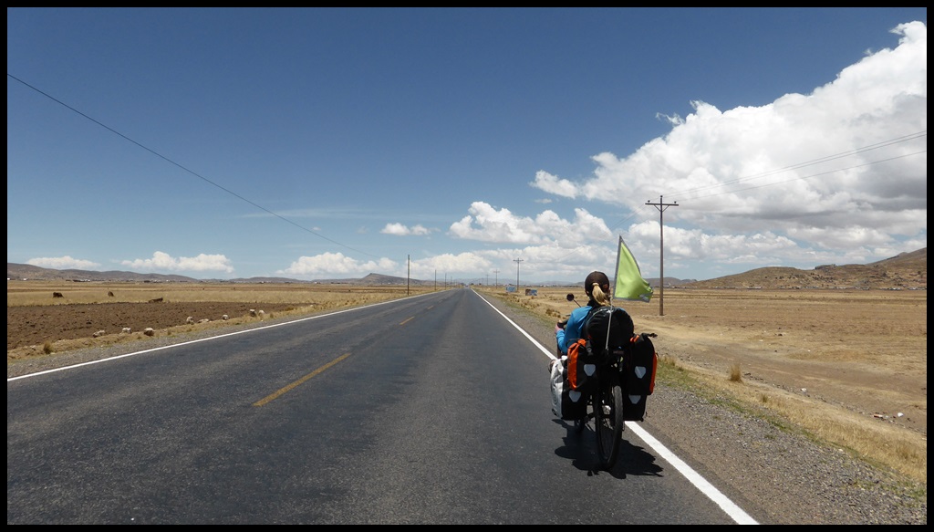 On longera le lac Titicaca pour sortir de Puno et reprendre la route qui mène à Juli. Enfin un peu de plat, je suis contente. Bon, par contre, c’est des lignes droites de 20 à 30 km qui ont tendance à énerver Fred.