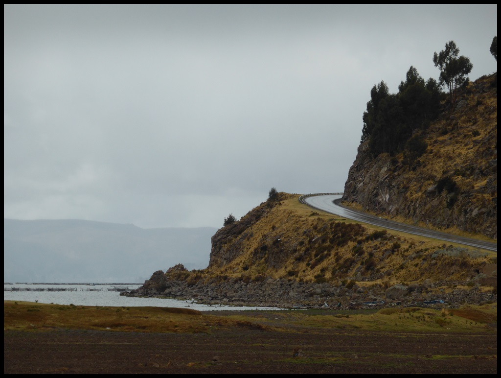La route est sympa et nous fait apprécier le lac Titicaca qui nous paraissait moche jusqu’à présent.