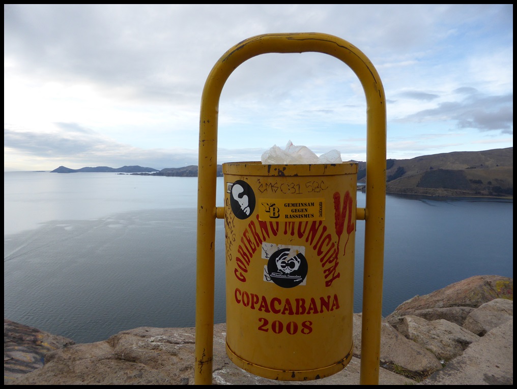 Je ne trouve pas simple de se nourrir au Pérou et en Bolivie sans se retaper une gastro. Il faut faire attention à l’eau, aux légumes et aux fruits, souvent lavés dans les rivières remplis d’ordures. Si tu veux en manger, il faut que tout soit cuit ! Même pour une pomme, le médecin m’a conseillé de la faire bouillir si je veux éviter de tomber malade. Pas simple. Et j’en ai marre de manger du riz avec du poulet à chaque repas. Donc, nous avons craqué pour du chocolat : M&Ms et Tobleron lors de notre arrivé à Copacabana. Ah le chocolat, ça fait du bien !