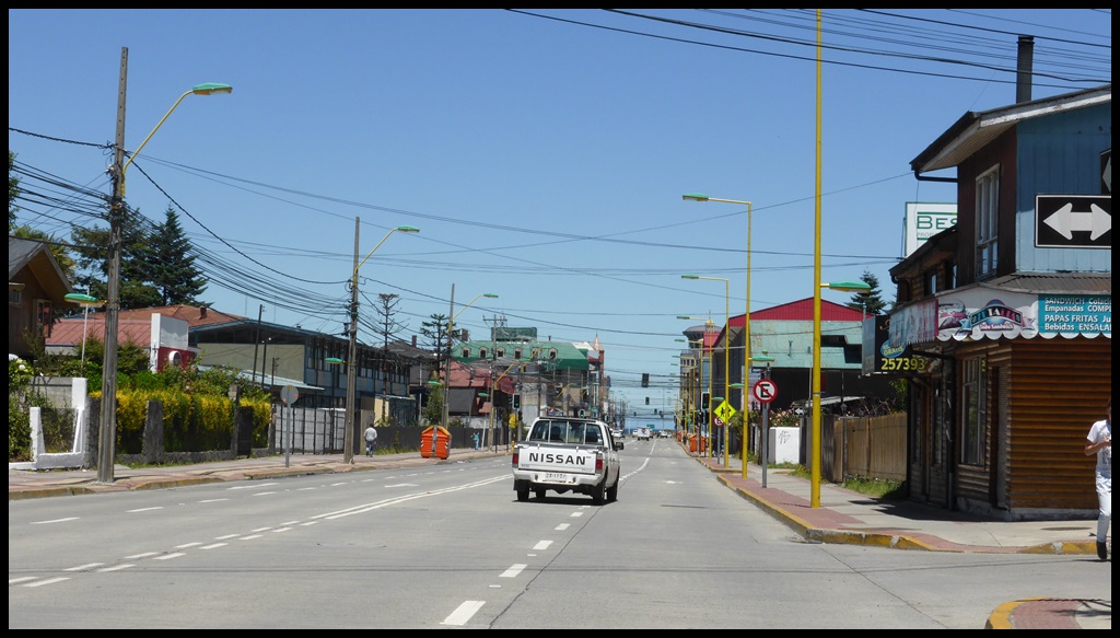 De Puerto Varas à Puerto Montt, c’est moins marrant car le trafic est intense. Chose originale, la route est à 3 voies, celle du milieu changeant de sens de circulation pendant le week-end. Il doit y avoir des dizaines de mort chaque vendredi et dimanche à minuit.