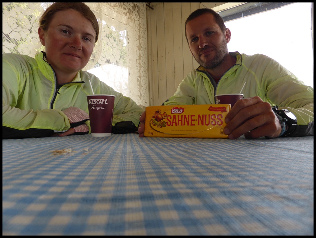 Au matin, c’est dingue ce qu’on a été maladroit avec la casserole. On n’arrivait pas à se parler sans crier non plus. Je sais, c’est mesquin et pathétique mais on était trop content quand on les a vu sortir de leur tente à 8h. Les pieds devant = 1 – Les blaireaux chiliens = 0.