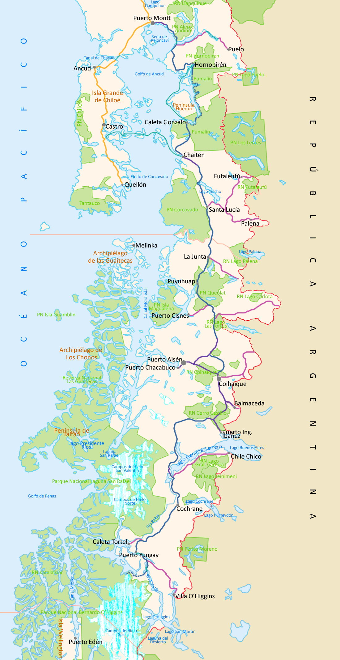 • 16/01/14 Quellon – Chaiten – Amarillo = 36 km, début de la Carreterra Australe