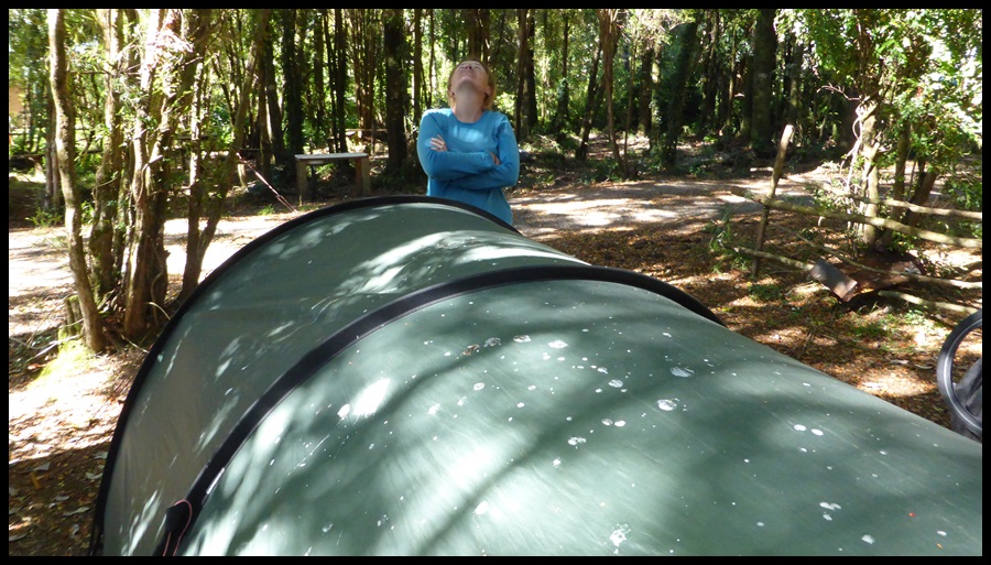 Et c’est pas plus mal au vu des belles côtes à 9 %. Sur notre carte, il n’y a rien entre Castro et Quellon mais nous croisons des bleds et même un camping en bord de lac ou nous nous installons. Comme il fait chaud, nos amis les taons sont de retours. Ils sont peu nombreux et finiront tous morts, après torture.