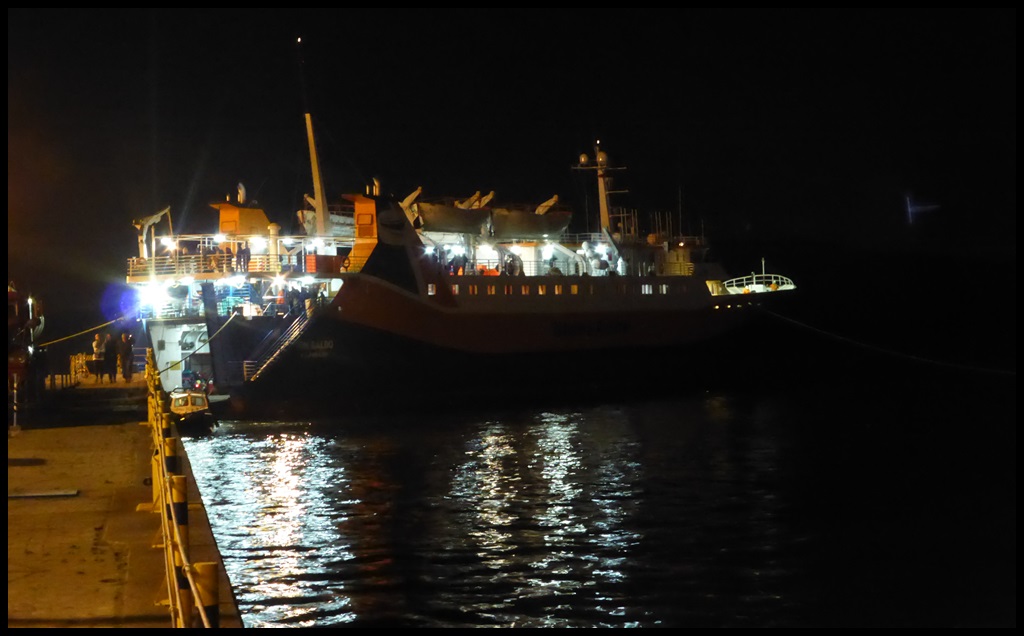 Le 16, réveil à 3h du mat. Le ferry part à 5h et faut pas le louper car le prochain est 7 jours plus tard. La veille, à 22h30, alors qu’il ne nous reste plus que 4h30 de sommeil, Ophélie met toutes les chances de notre côté en faisant une petite crise de stress et en vérifiant sur le net que nos montres sont bien à l’heure du pays dans lequel nous sommes depuis presque 4 semaines. C’est bon, on était bien synchronisé, on ne fera pas la même erreur qu’avec le bateau à Copacabana. Et que le bus à Calama.