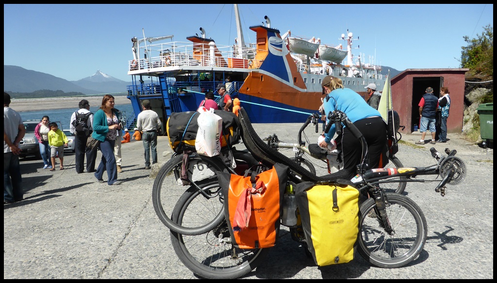 La nana de l’office du tourisme nous avait dit que le port n’est qu’à 2 km, c’est donc après 8 km que nous y arrivons. Comme les argentins, les chiliens ont des petits soucis avec les distances. Peut-être qu’elle parlait en kilomètre chilien dont personne ne connaît le taux de conversion.