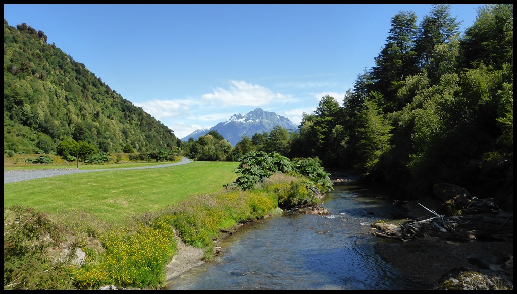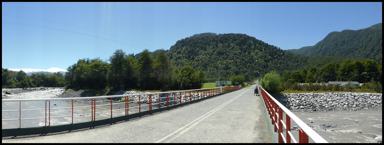 Il fait encore très beau quand on débarque à Chaiten. 25°C à l’ombre, vent dans le dos, route plate et magnifique. On attaque la careterra australe de la plus belle des manières. Sauf que.