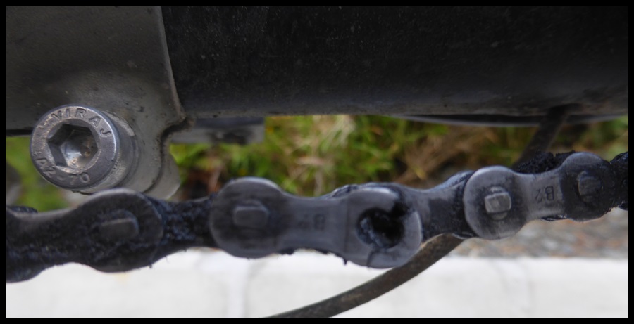 Un maillon de la chaîne d’Ophélie casse. Quel bonheur à réparer avec Ophélie me fouettant la tête pour chasser les bestioles.