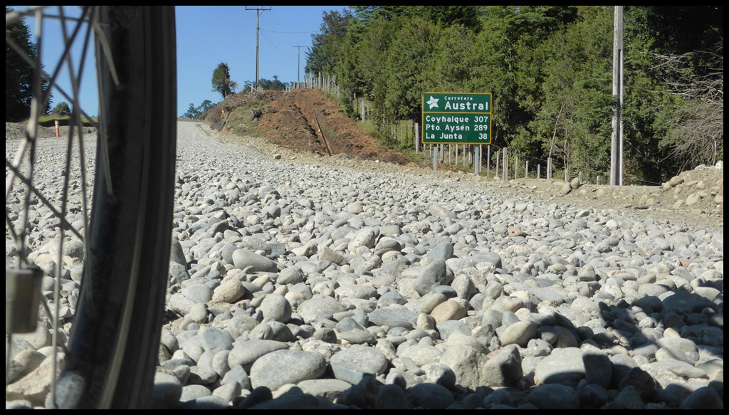 donc inquiétude forcément ; puis il y a eu la suite ! deja le mot gamberger : « oh la la » me suis je dis (en français pour rester simple ) si Fred gamberge maintenant , on n’a pas fini ! 8 heures par jour sur son baquet à se fusiller les genoux en flexion-composée (alternée compression-élongation), ca va mal tourner ; et patatras « plein » dans le mille : « je gamberge sur mon outil de travail » nous assène notre travailleur de la carretera australe !…; la ca été le début d’un récit éprouvant à supporter ; puis les galets!!! non mais c’est quoi ces galets! faut pas déconner jamais vu ca! ils veulent nous le casser notre fred!! même s’il ne l’a pas cité, faut pas oublier que ses genoux, c’est bien au dela du coup de pied retourné pour chick, c’est comme la tchatche claquée pour fred !