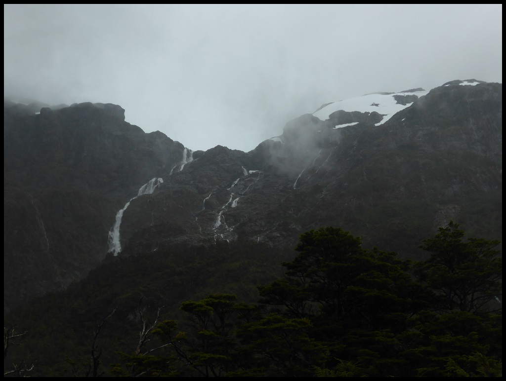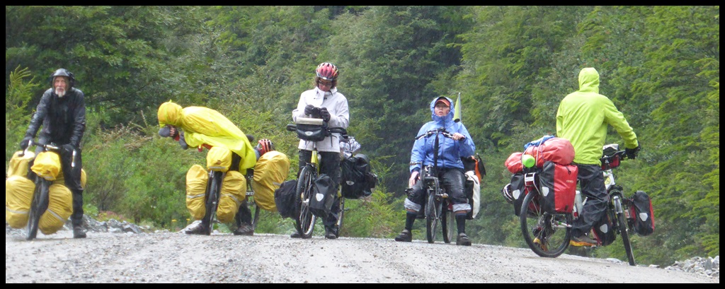 Fin du beau temps, fallait bien que ça arrive un jour. On part en gore-tex avec Flo, Tom et un couple de californiens : Maggy et James, partis de San Francisco il y a 21 mois. On se marre bien avec James, il a vraiment une gueule celui-là. Il a une grosse machette et un couteau de Rambo, on devient tout de suite ami.