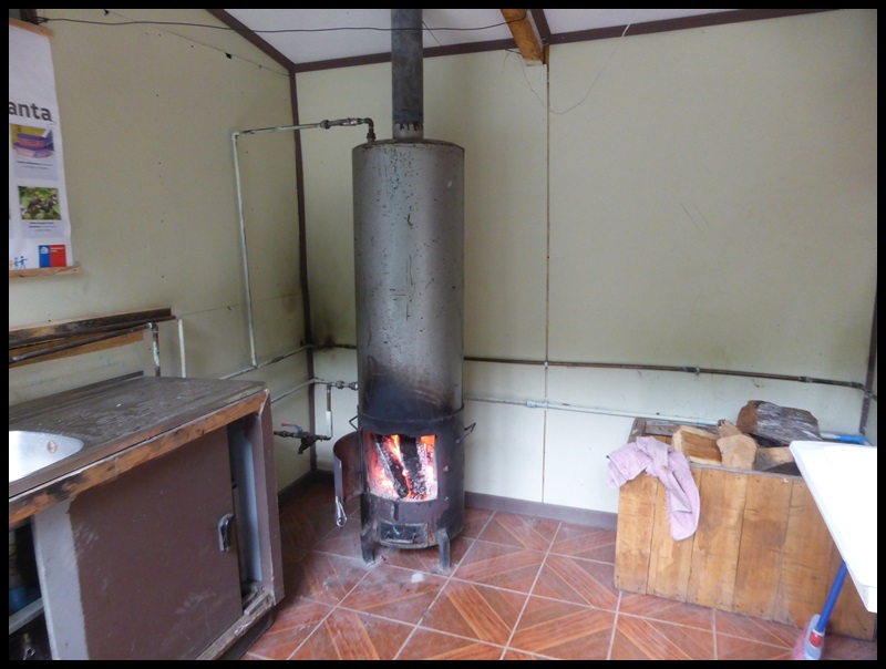 Comme on est 4, on se prend une cabanas, c’est un petit chalet tout équipé avec poêle à bois. Ça coûte un bras mais faut faire sécher les affaires pour repartir dès demain. On profite de la cuisine pour se faire une pleine marmite de patates sautées avec carottes et oignons, terrible. On fait bouillir 4 grosses saucisses : 2 pour le dîner et 2 pour la route le lendemain. On mange les 4 illico.