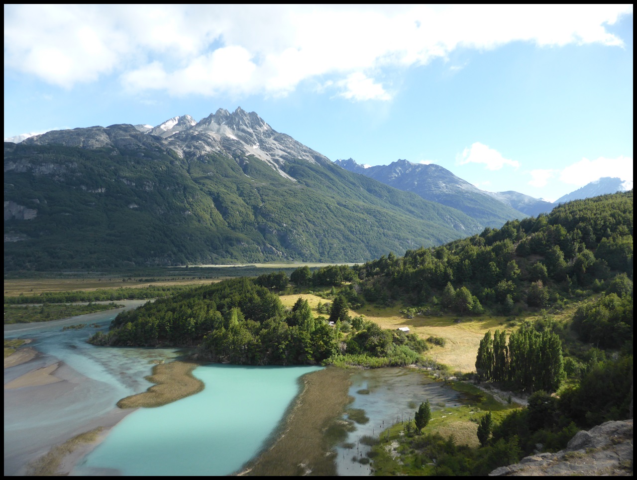 Le matin, il fait 8°C, on sent le froid qui descend des petits glaciers au-dessus. On passe un bébé col à 1100 m et on descend vers Villa Cerro Castillo, magnifique.