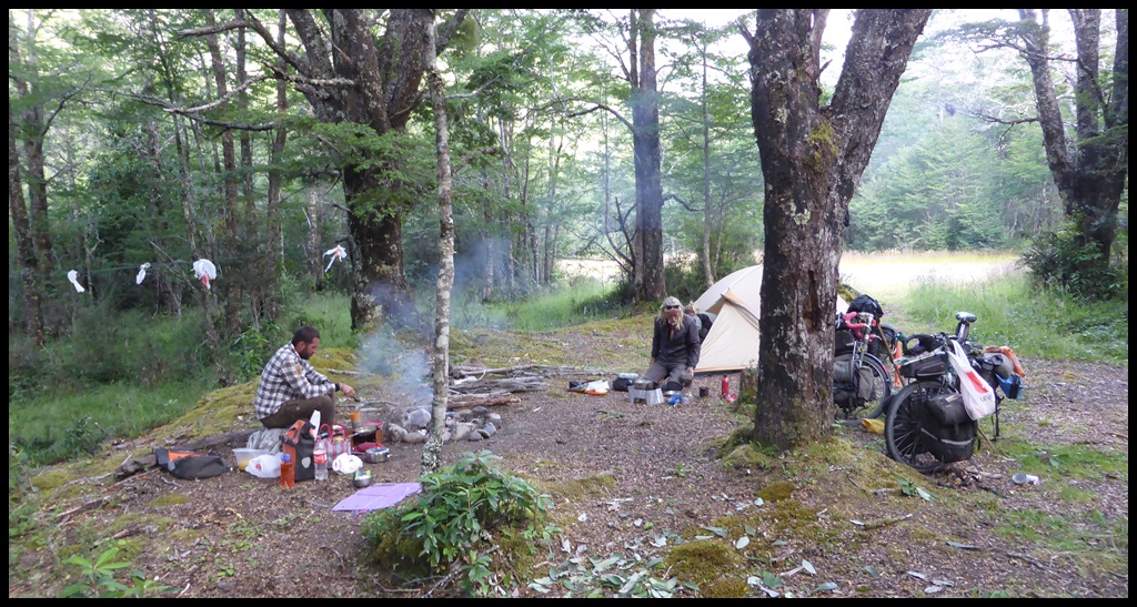 Au bout de 50 km, on est cuit et on se trouve un bon spot au bord du Rio Murta, sans savoir que Tom et Flo poseront leur tente à 200m de nous, en amont.