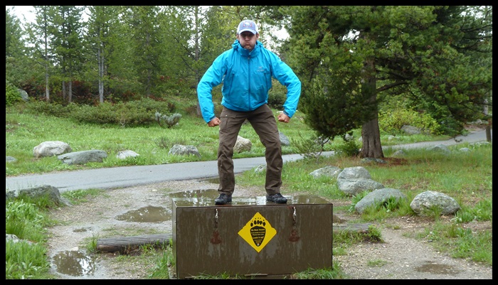 Dans le coin, il y a des gros nounours. Donc les campings sont équipés de grosses boîtes métalliques pour y mettre tous ce qui a une odeur : bouffe, déchets, shampoing, baume à lèvre, dentifrice, crème solaire …. C’est hallucinant !