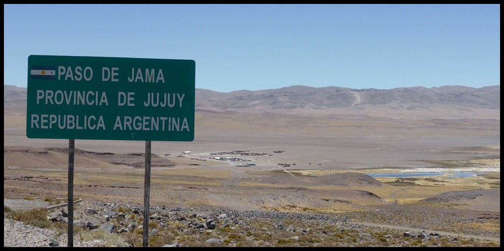 On arrive vers 12h à la douane, juste avant un bus pleins de gringos qui feront la queue. On fait tamponner les passeports avec 90 jours pour l’Argentine.