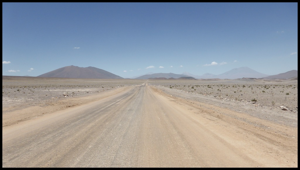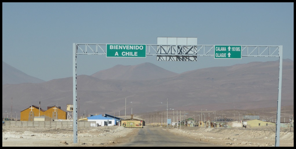 On quitte l’école pour faire la queue à la douane, qui ouvrait à 7h finalement. Et qui ne nous coûte que 15 bols/pers. On traverse un petit no man’s land de 5 km et refaisons la queues à la douane Chilienne. Le préposé est aussi sympa que mon t-shirt est propre.