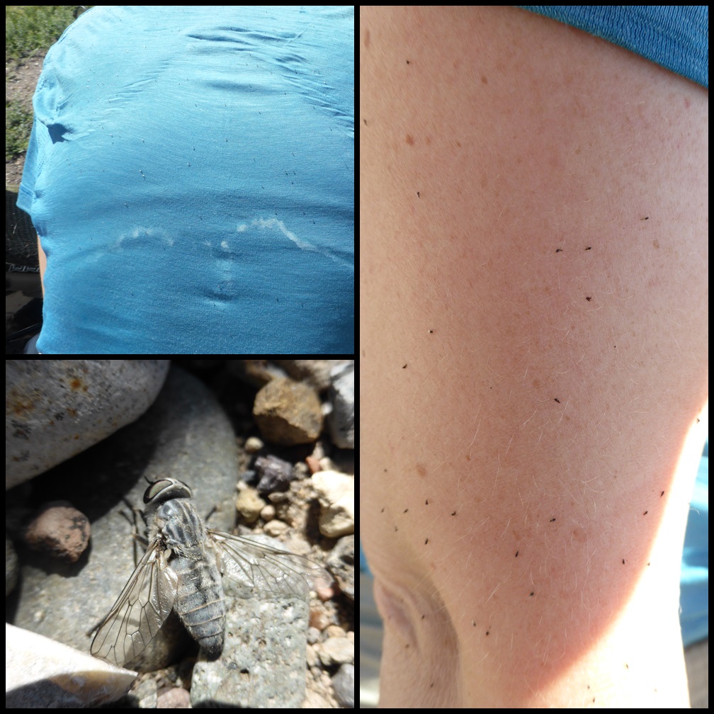 On arrive au pont du rio Salado à 16h. L’eau est tiédasse, pas d’arbres, chaleur à crever : on se concerte et on décide de continuer et de boucler les 160 bornes. On sait que la suite du parcours est plus facile avec « seulement » 500m de D+ sur 52 km. Seulement, au bout de 20km, le vent forcit d’un coup et ça devient un cauchemar de pédaler. 10km/h sur le plat, en forçant.