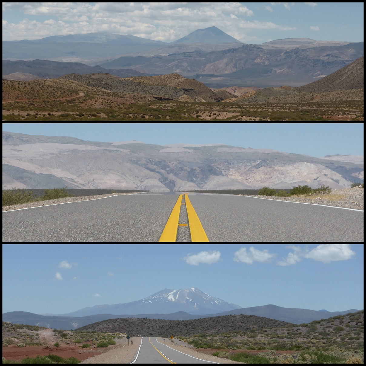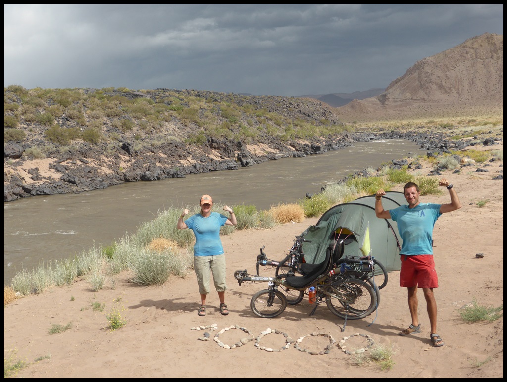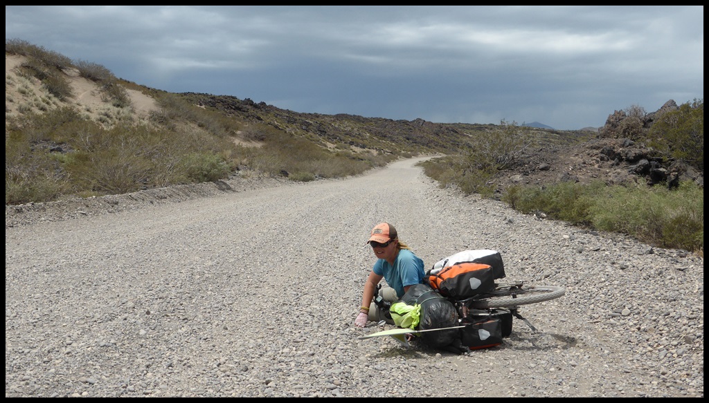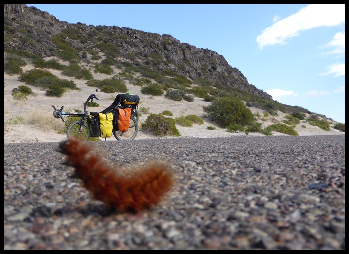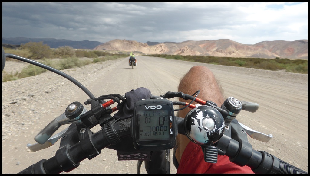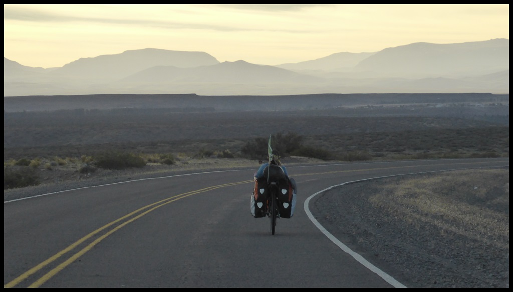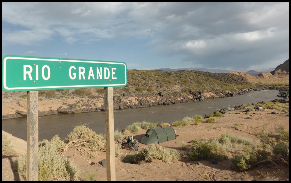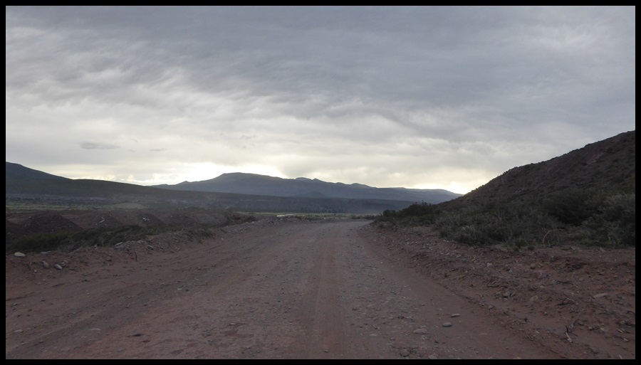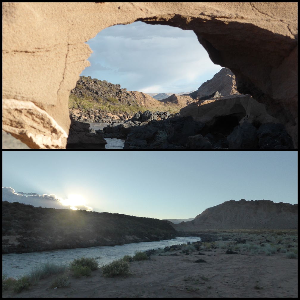 De Barrancas, on repart sur la route 40. Très peu de trafic, paysages toujours très secos mais on se plaît vraiment bien finalement sur ce parcours. Il ne fait pas extrêmement chaud et le constant vent de face nous rafraîchit, à défaut de nous aider. On se débrouille pour faire des pauses à l’ombre et même un beau petit bivouac le 1er soir au bord d’un ruisseau. Le temps se couvre et on passe une super soirée, seuls dans ces grands espaces.