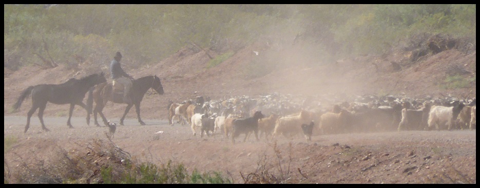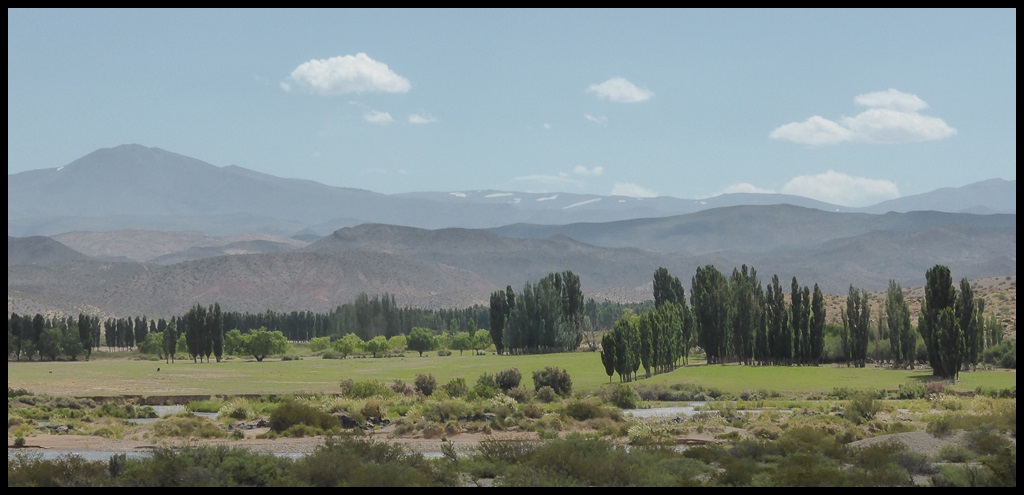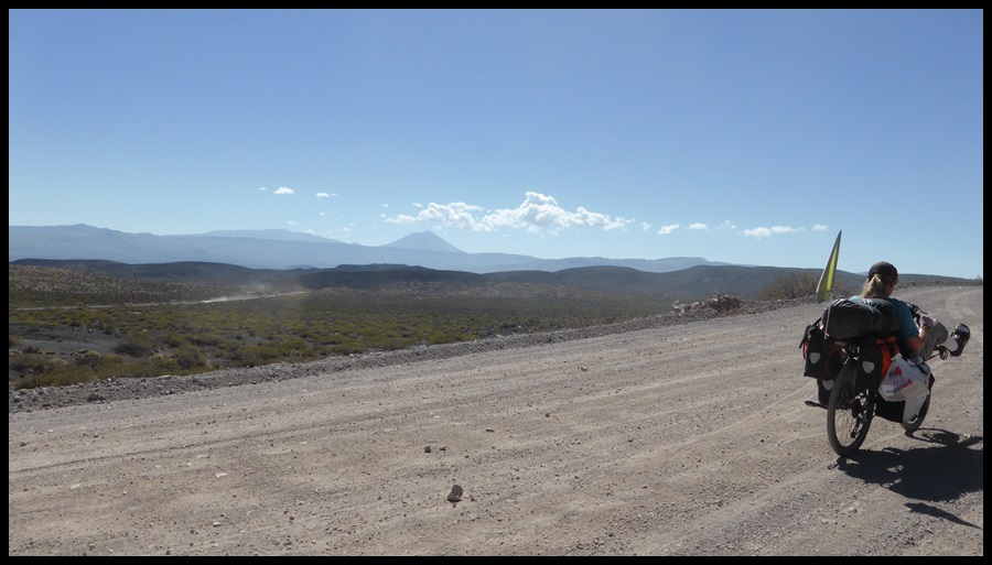 Après ça, on descend vers la pampa del Salado : une immense étendue de 40 km de long, des buissons avec des montagnes autour. Alors vous vous dites sûrement « mouais, paysage de merde, toujours la même chose » et vous êtes pas loin de la vérité. Mais c’est génial de traverser tout ça à vélo, on se prend pour Gus et Lorena dans Lonesome Dove (à lire absolument).