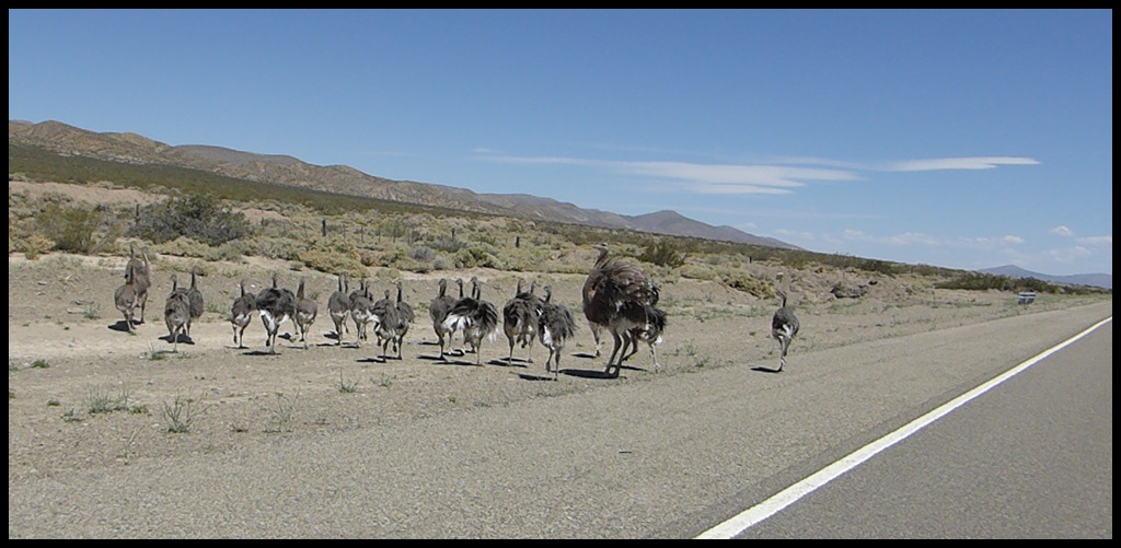 Pas grand chose à voir, sauf quand on tombe comme par magie sur un troupeau entier d’autruche. Moment incroyable : 1 adulte et une bonne vingtaine de jeunes. J’ai pas fait le malin, la grande avait pas l’air commode. Mais elle a fini pas sentir le prédateur et elles ont détalé comme des autruches. Normal, pour des autruches.