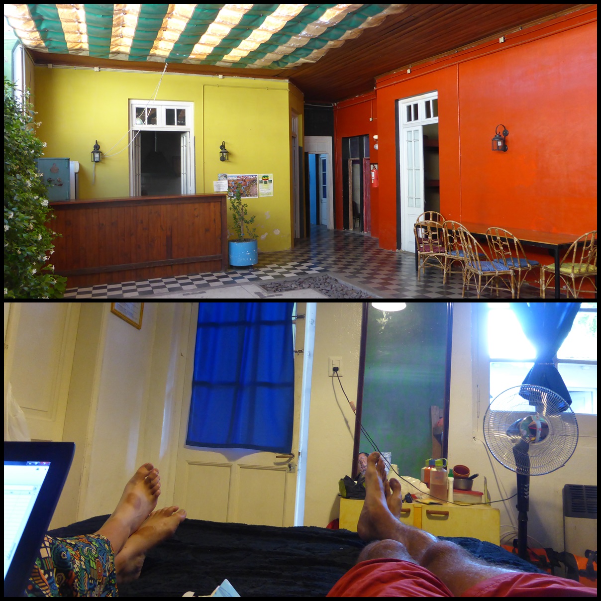 A 17h30, toujours personne alors on monte la tente en espérant que personne ne viendra et qu’on pioncera gratos. A 18h, évidemment, le gars arrive. Il demande bien trop pour son camping pourri alors on décide de replier la tente et de prendre une chambre qui nous revient seulement 2 fois plus cher après une bonne négociation (120 au lieu de 160 pesos).