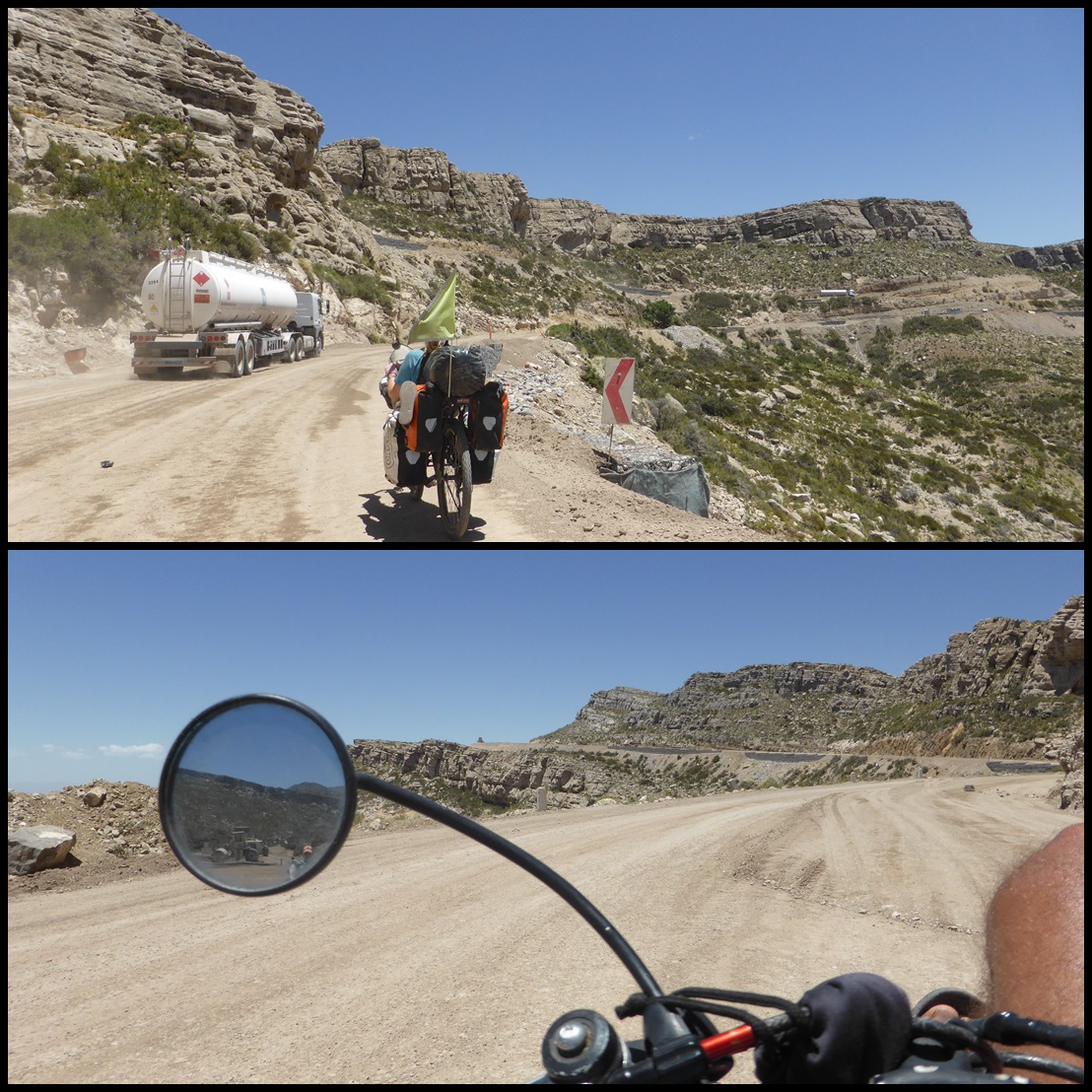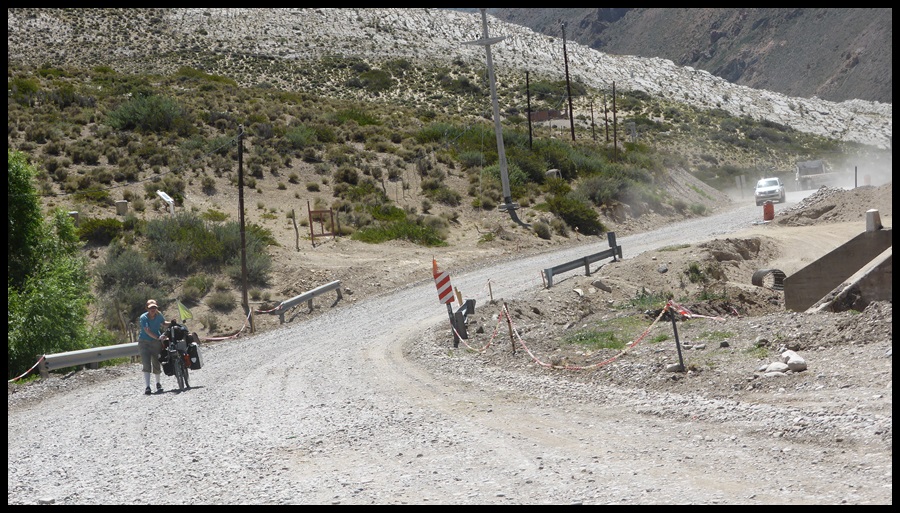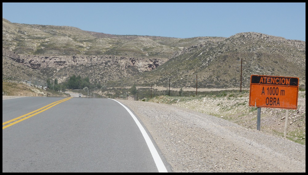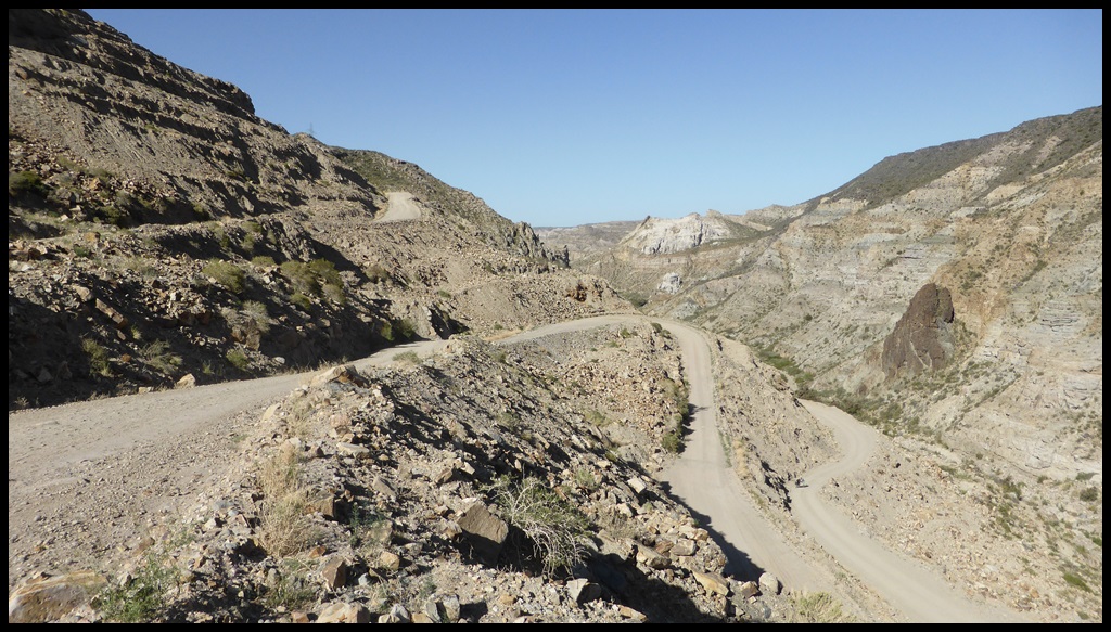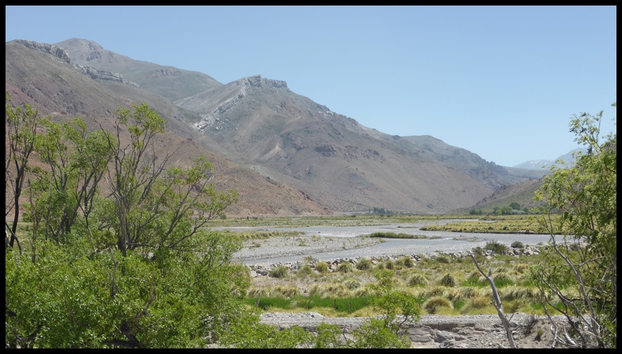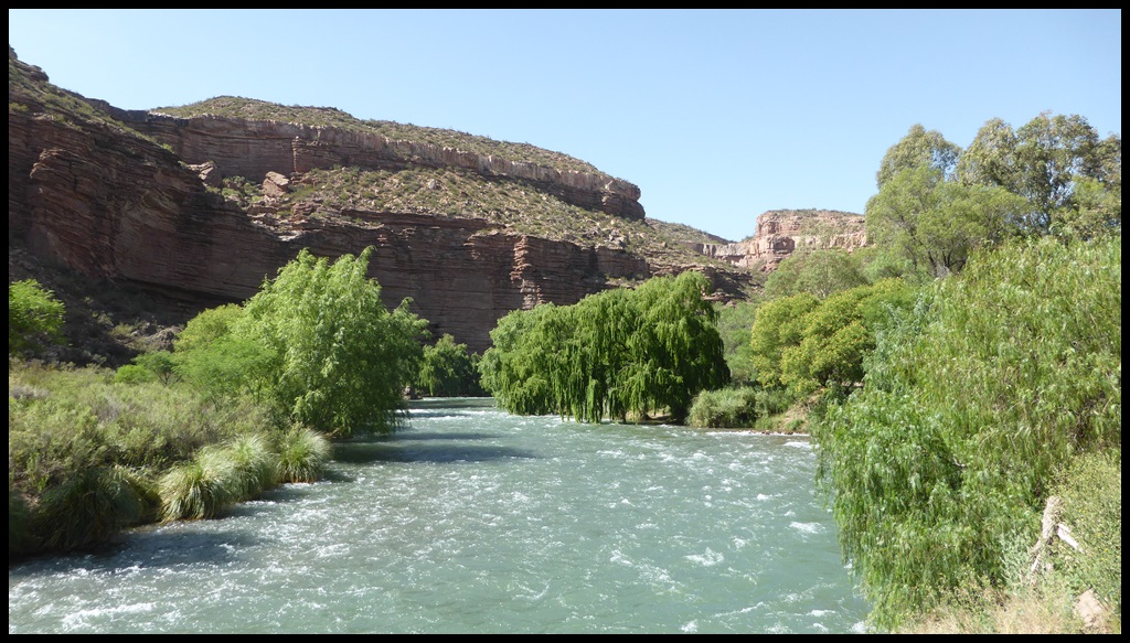 Avant 10h, on les a déjà fait. Nous sommes dans le rafraîchissant canyon d’Atuel. Très belle route au bord d’une eau bleue-grise mais dans notre grand classement des canyons, c’est loin de la 1ere place. On devient des gros cons blasés, je sais.