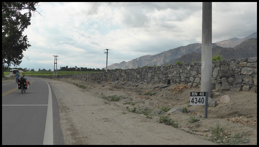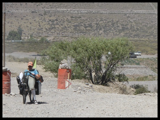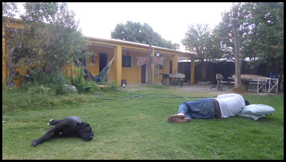 Les 20 derniers km en faux-plat montant sont interminables mais on arrive à El Sosneado vers 15h30. Une glace, 2 glaces et on pose la tente derrière l’épicerie, seul commerce de cette ville au 19 maisons, qui a pour seule gloire d’être au km 3000 de la route 40 et d’avoir quelques gisements de pétrole. Attention, les ricains vont pas tarder à venir y faire la guerre !