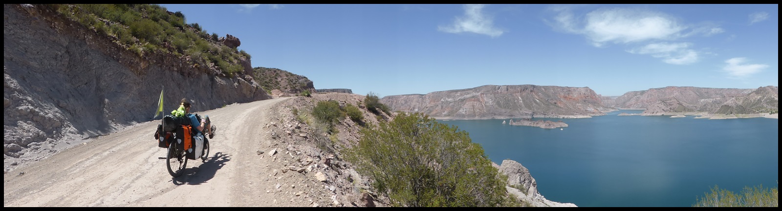 Une petite descente et nous voilà à El Nihuil, village construit au bord d’un barrage et d’un lac gigantesque. On se trouve un camping bien sympa et désert, à part le couple de cycliste argentino-canadien-baba-cool.