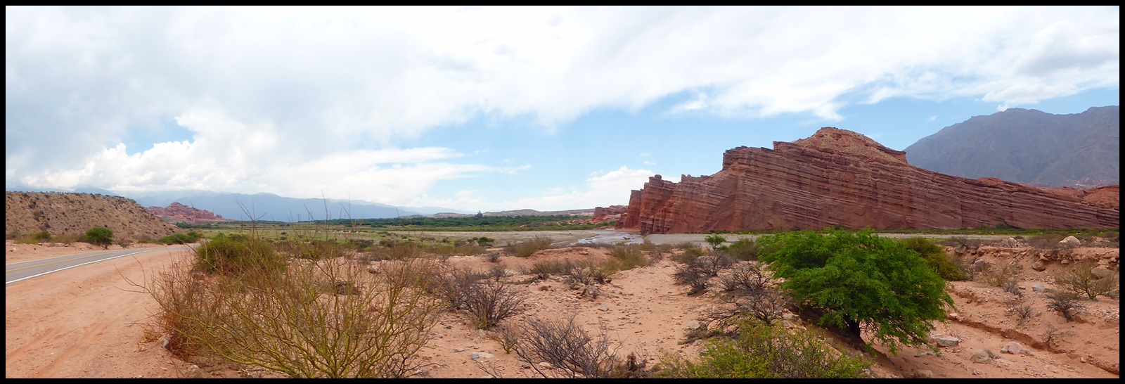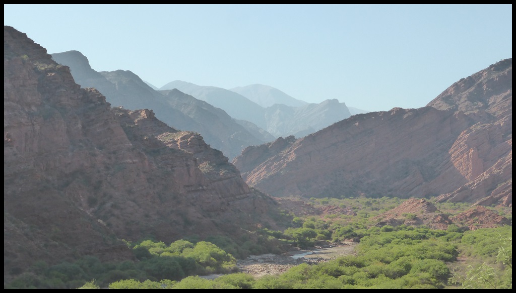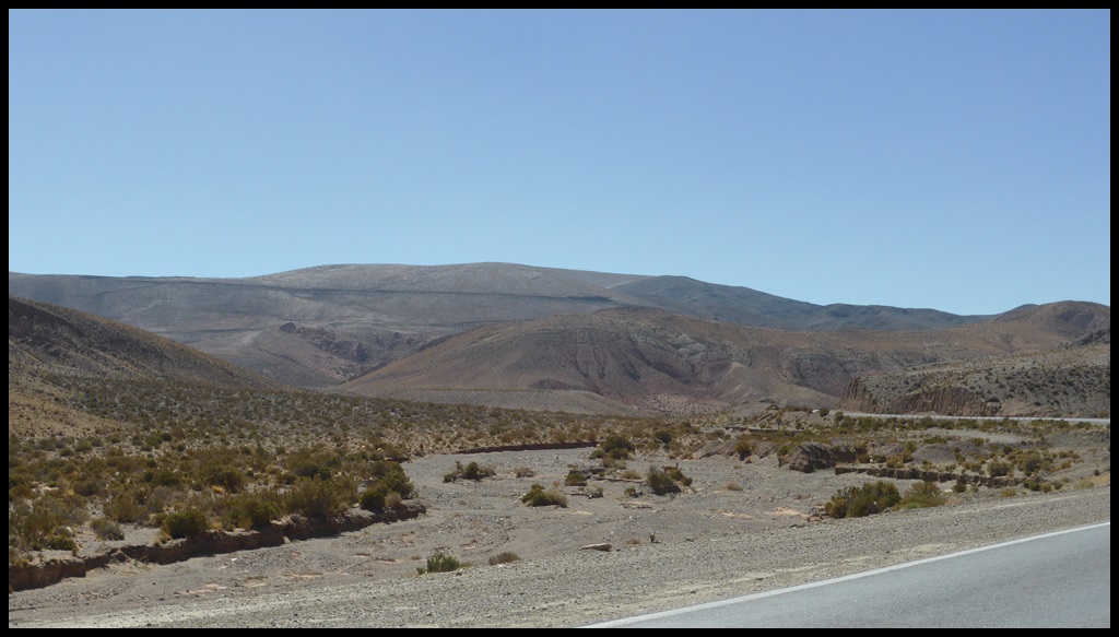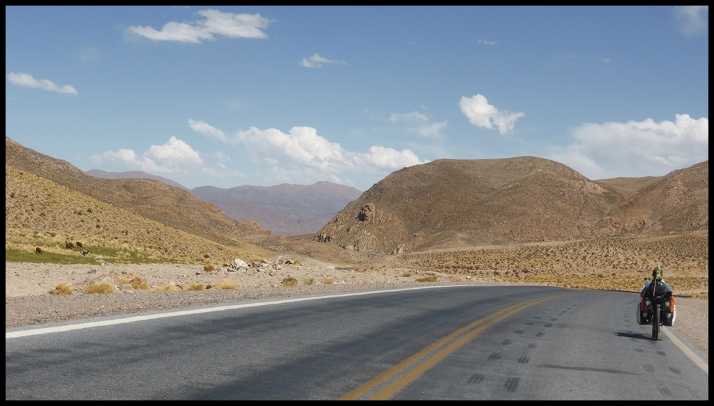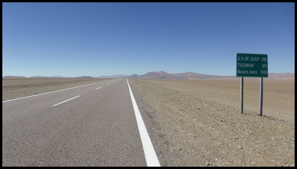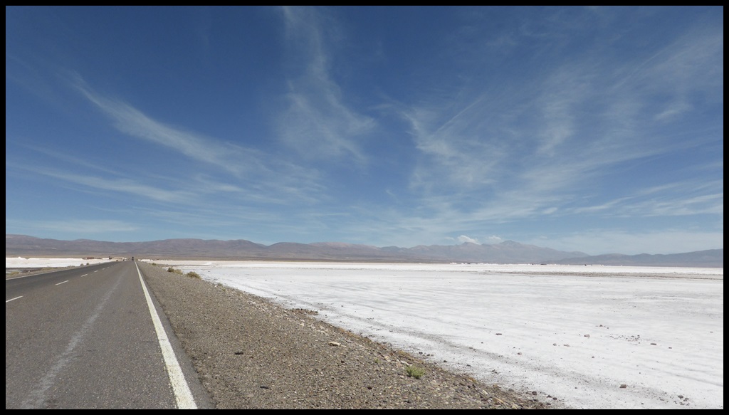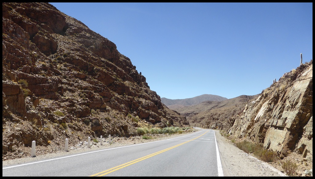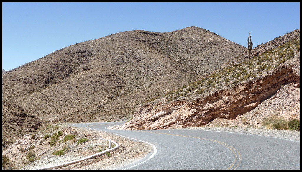 C’est parti pour une grosse étape. On s’extirpe rapidement de Salta et ses banlieues pour retrouver une route plus tranquille. Les kilomètres s’enchaînent mais il commence à faire une chaleur à crever, surtout après la pause sandwich de midi, le pire moment, celui ou tu voudrais juste trouver un lit avec la clim.