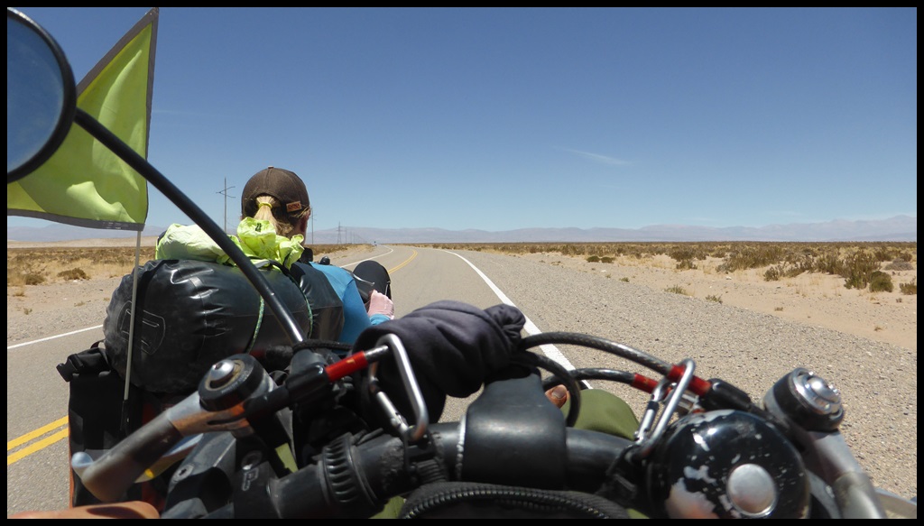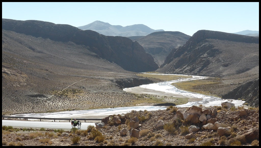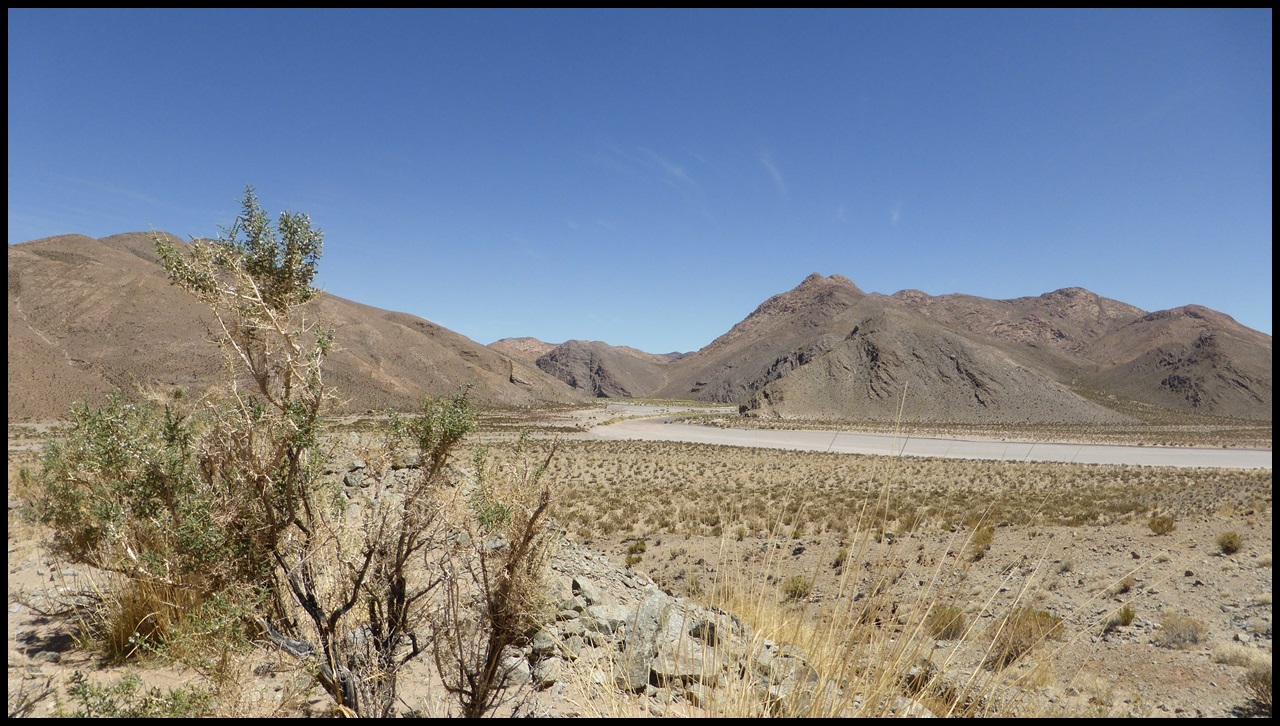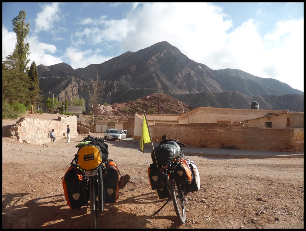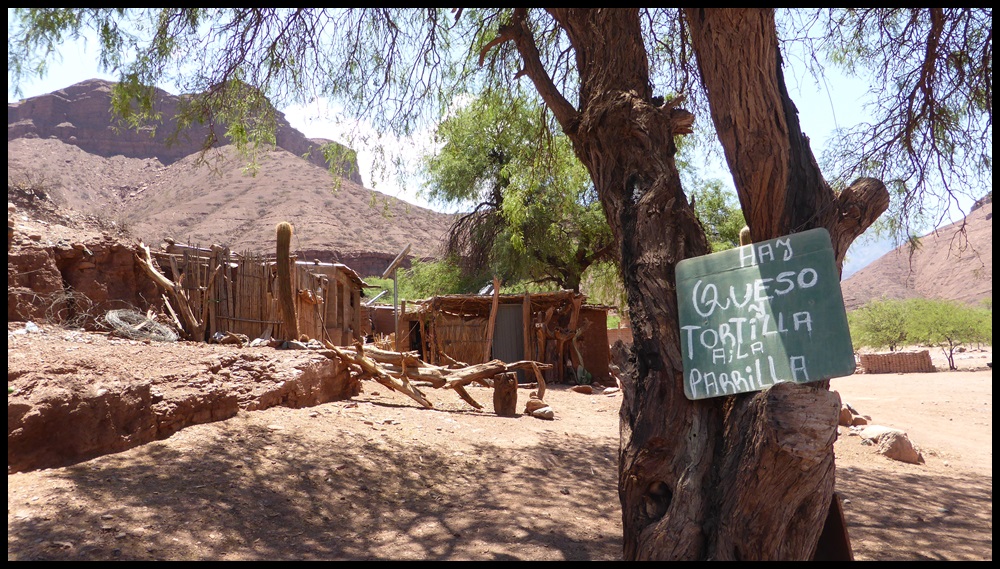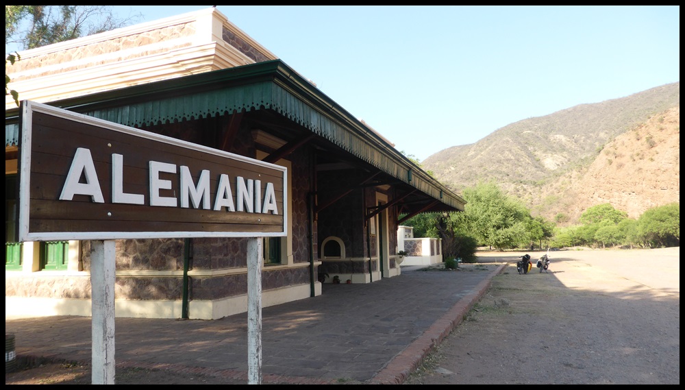 Après une autre pause soda (vive les frigos, y’en partout en Argentine, ça change d’avant), on repart pour les 20 derniers kilomètres. On s’approche des montagnes et on commence à flipper. Mais en discutant avec un couple de cyclo franco-argentin, on apprend que ça grimpe gentiment après Alemania, puisqu’on remontera une rivière, ouf. Avec cette chaleur et la fatigue des jambes, on se sentait pas d’attaque pour un col.