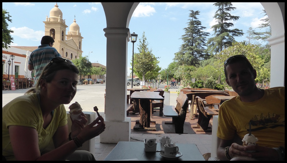 On se trouve un bon hôtel pas cher dans lequel on pourra cuisiner. On décide d’y rester 3 nuits, le temps de retrouver nos guibolles. Cafayate nous plait, c’est tout petit et pas trop touristique. C’est aussi l’occasion de s’immerger dans l’Argentine : on ne fait rien de l’après-midi, on se fait des asados, des salades tomates-avoca-fromage, on boit du vin blanc sucrée, on visite une bodega, on manges des glaces (au vin blanc et au dulce de leche) et on gamberge sur la suite du parcours car on en a marre de la caillasse et de la chaleur. A suivre…