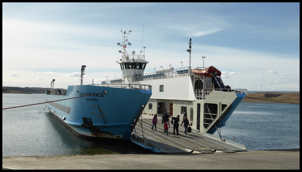 On embarque sur le bateau en compagnie de 2 argentins. L’un d’eux roule sur un Koga Randonneur. T’as vu Papa ? Il aura fallu qu’on se coltine 13000 bornes pour en voir un comme le tien ! Pour la petite histoire, ce vélo appartenait à un cyclo français qui, après être arrivé à Ushuaïa, en avait tellement marre qu’il a tout revendu.