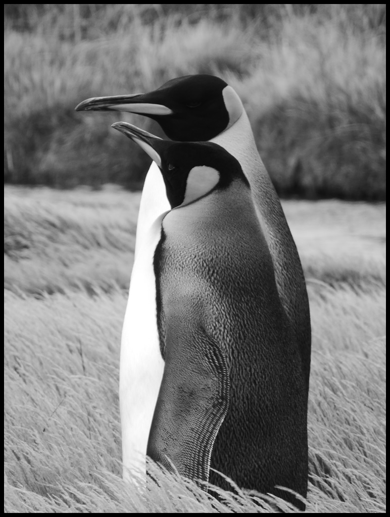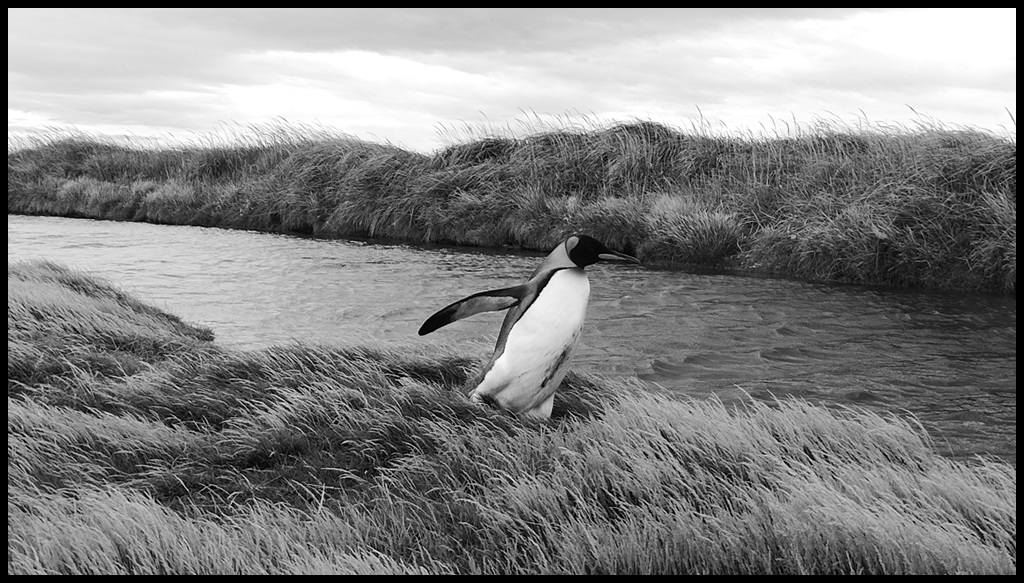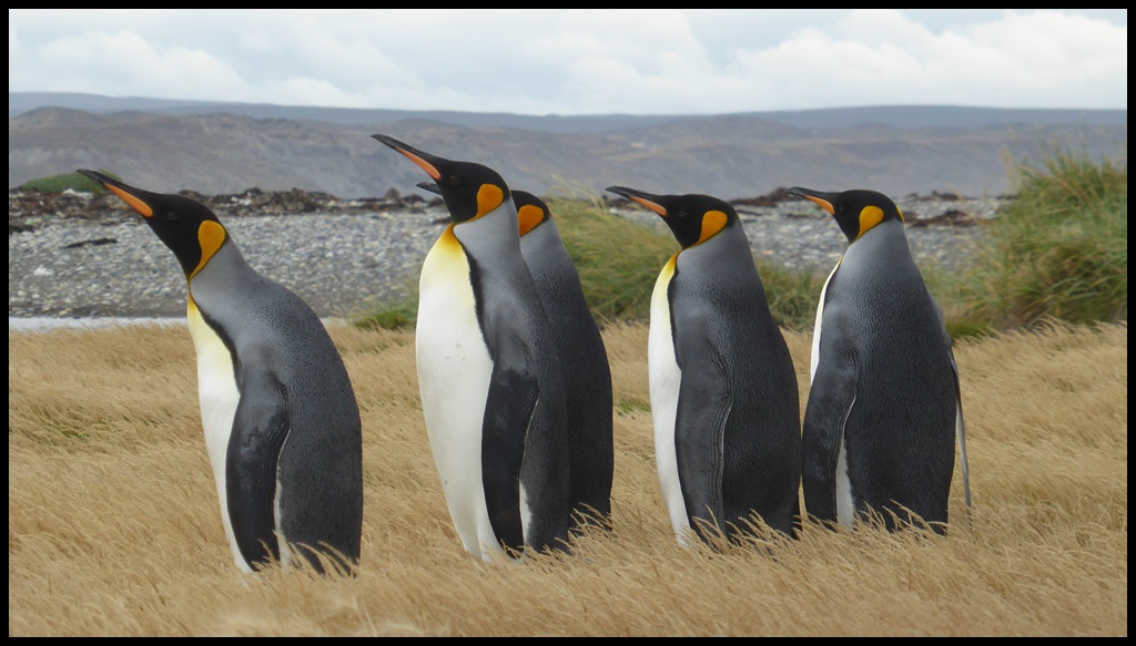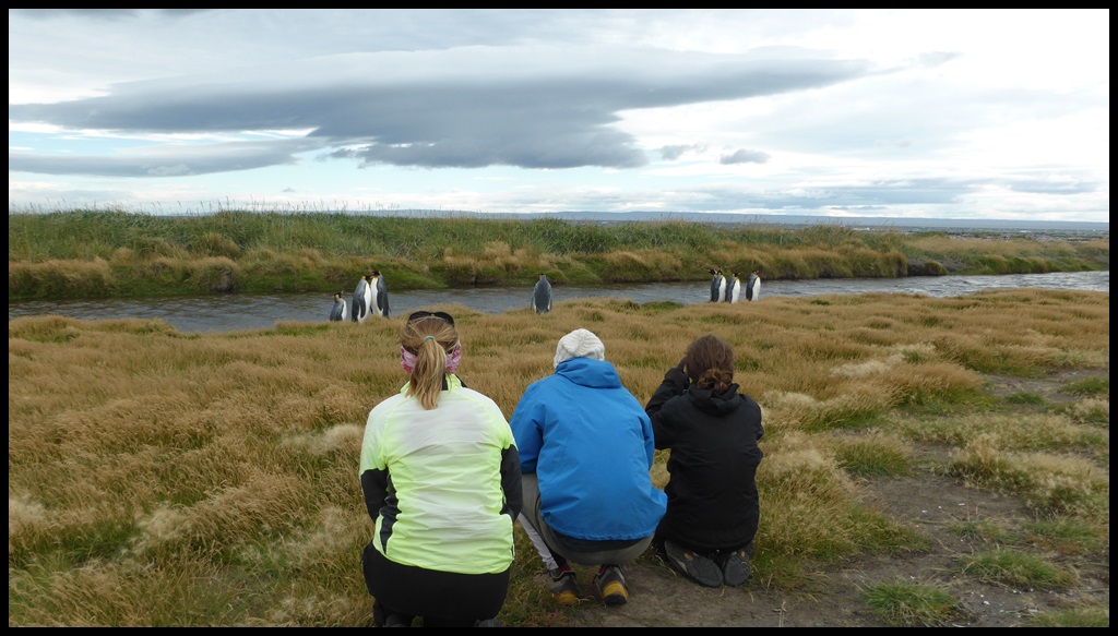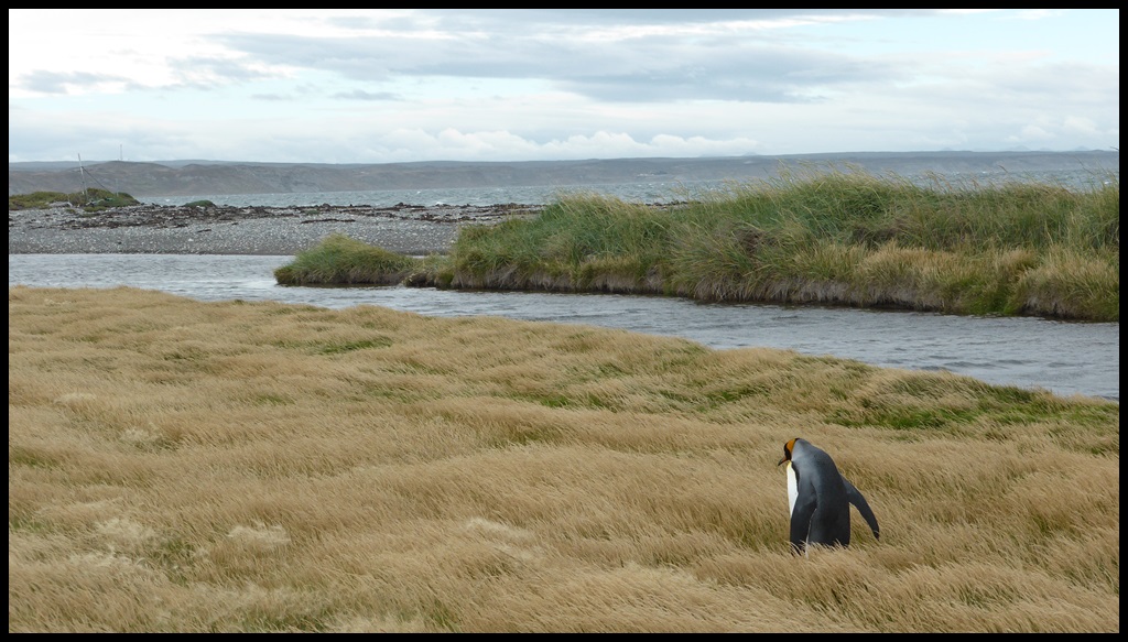On passe un super moment. Ces animaux ont l’air vraiment stupides et ils le sont sûrement vu qu’ils passent la plupart du temps sur terre alors qu’ils sont taillés comme des torpilles sous-marine. La colonie que nous observons est là en permanence, comptant 100 à 200 individus, vivant du poisson abondant de la baie. Ils sont vraiment beaux, colorés, vivant en couple et marchant comme des écoliers en file indienne. Ce sont les plus gros manchots après les manchots empereurs. Ces derniers, grâce à une belle couche de graisse vivent plus au sud, là ou ça caille sévère.