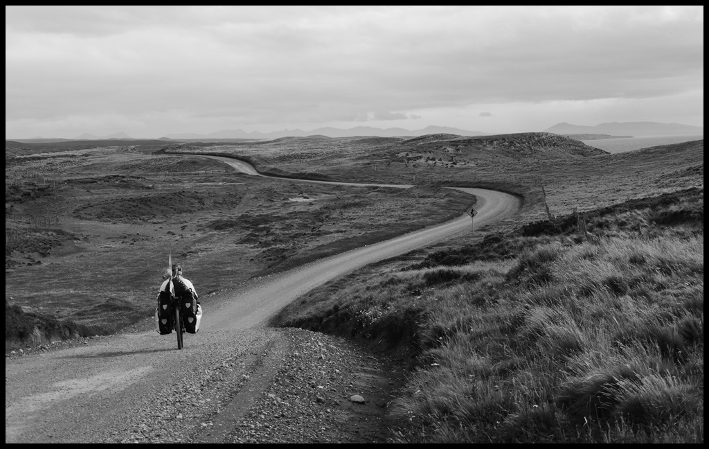 On continue et traversons des paysages faisant penser à la savane africaine. Au fond : la cordillère de Darwin, derrière : le cap Horn.