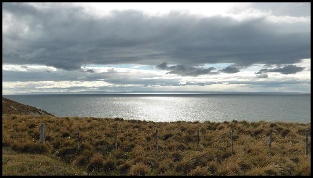 On part aux aurores histoire de ne pas louper le bateau. Nous longeons le détroit de Magellan sur une piste cyclable. Et ouais, une piste cyclable ! En Amérique du sud ! Fallait la trouver celle-là !