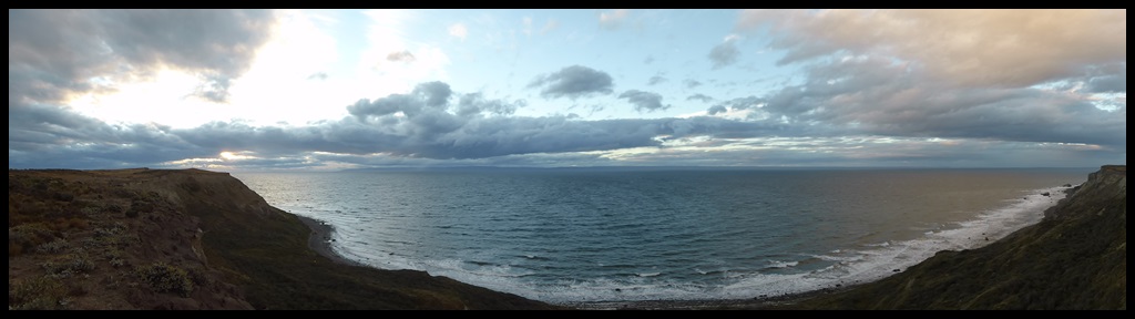 Il fait beau et, après une grimpette, la Baie Inutile apparaît. Nous la longerons entièrement sur 2 jours, moitié vent dans le dos, moité vent dans la tronche, grandiose. Son nom vient de Magellan, qui, cherchant une foutue sortie pour son futur détroit, arriva dans ce cul de sac. Vu qu’il avait bien galéré pour rien, il avait dit :