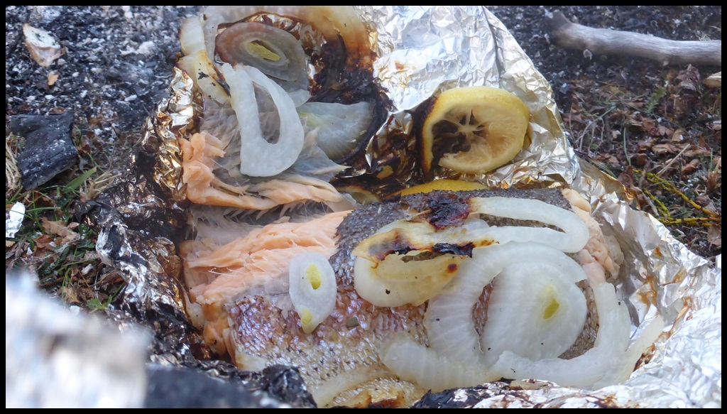 On passe une bonne soirée, près des flammes pendant que la T°C chute. Il fera 2°C sous la tente quand on se couche et moins de 0°C le lendemain au réveil.