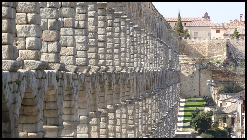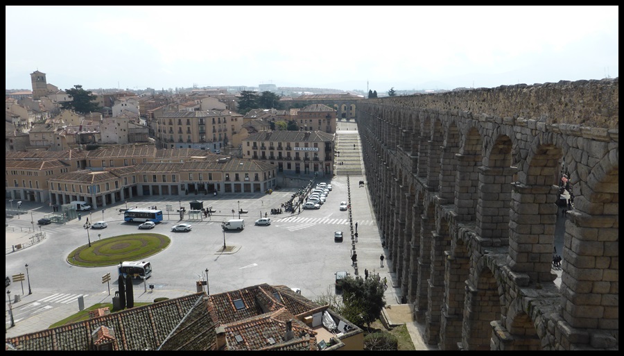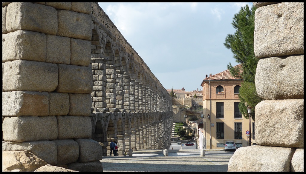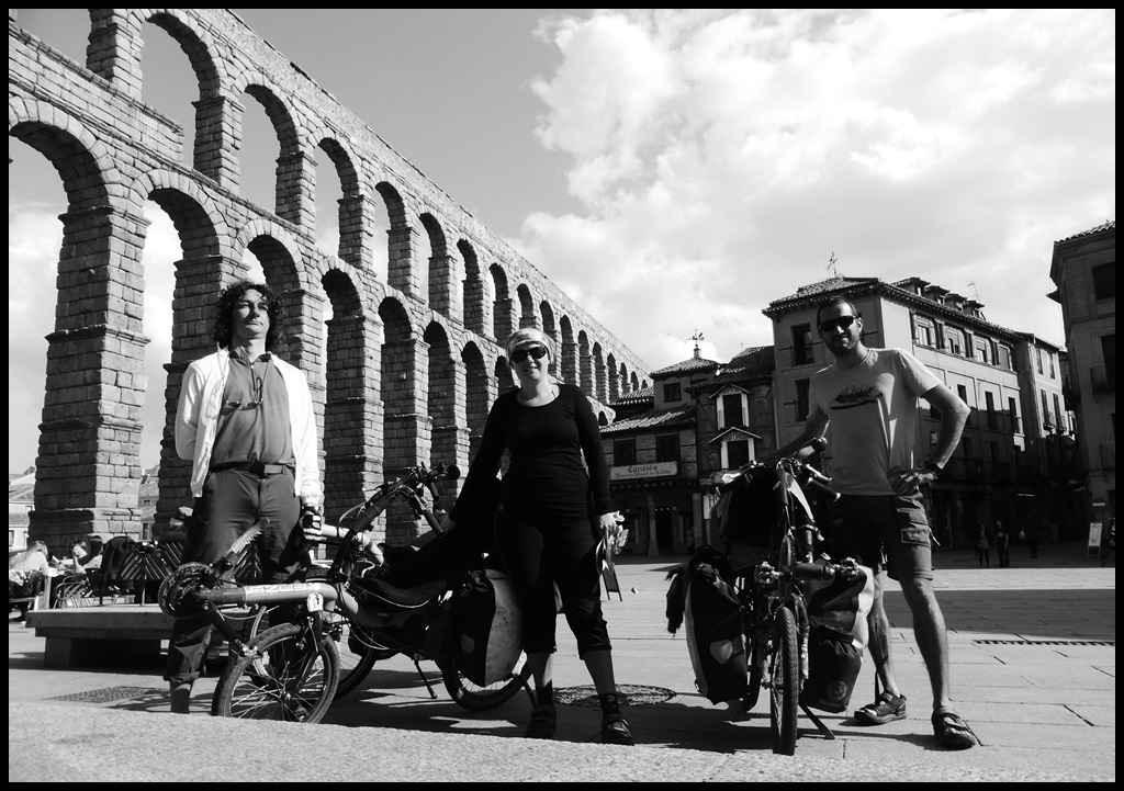 Il nous attend devant le camping de Segovia…fermé, damned ! On descend donc vers le centre-ville le long du magnifique aqueduc. Très jolie.